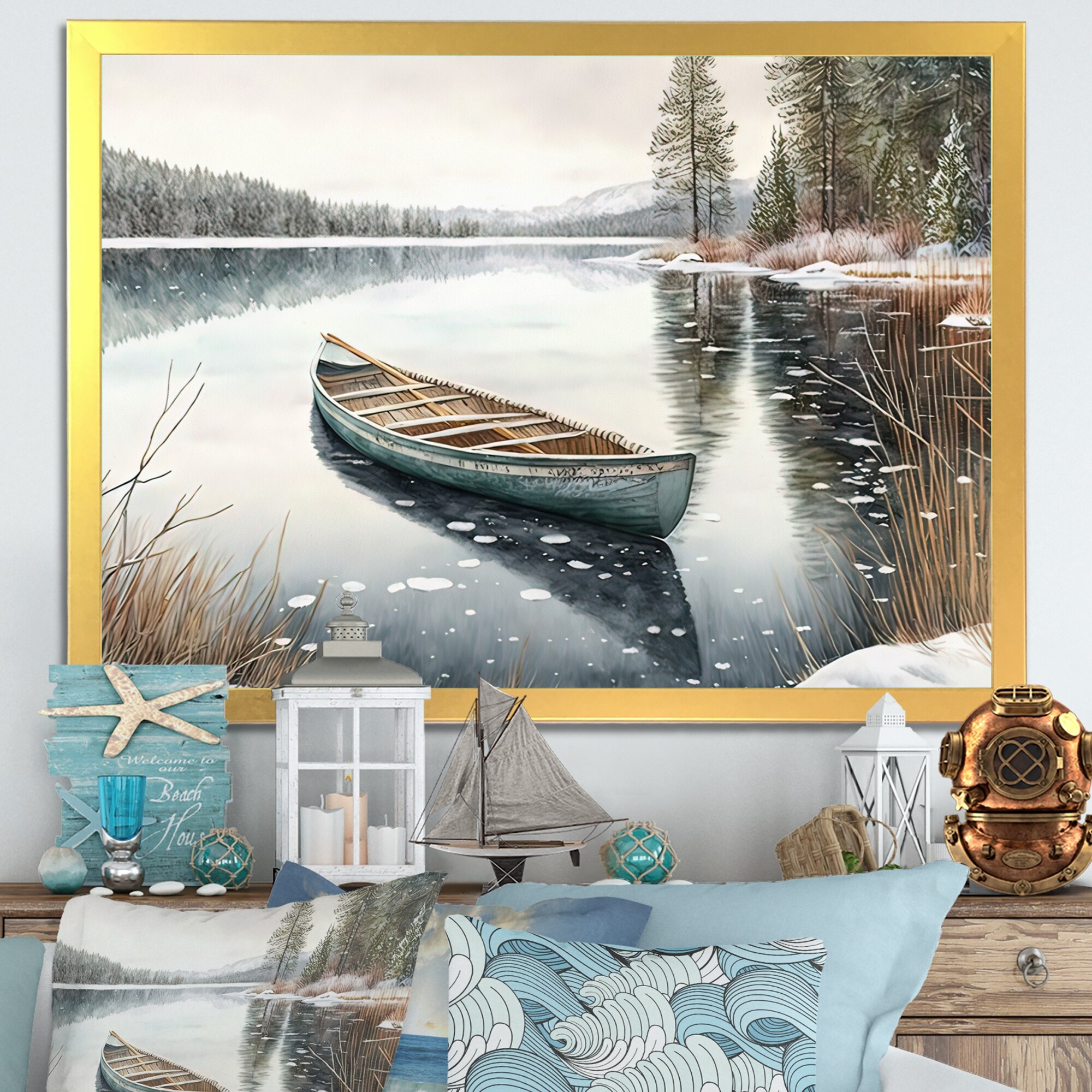Designart "Winter Scene With Canoe IV" Farmhouse / Country Framed Art Print
