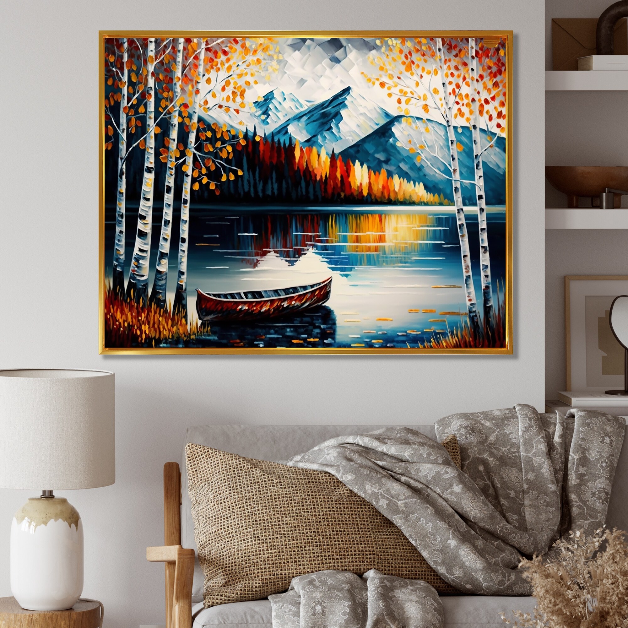 Designart "Canoe On A Lake in Fall I" Farmhouse / Country Framed Canvas Art Print