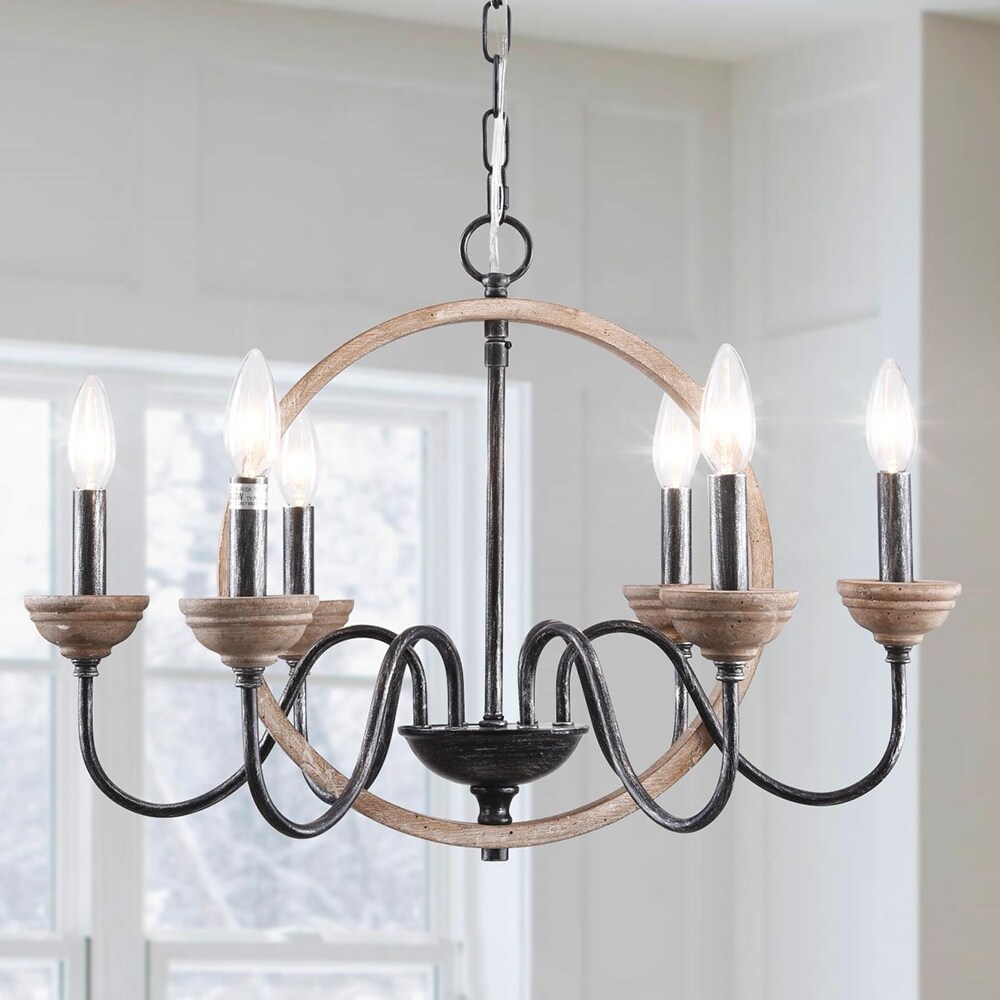 Oaks Aura French Country 6-Light Wood Chandelier Candle Style Rustic Farmhouse Shabby Chic Pendant Ceiling Light