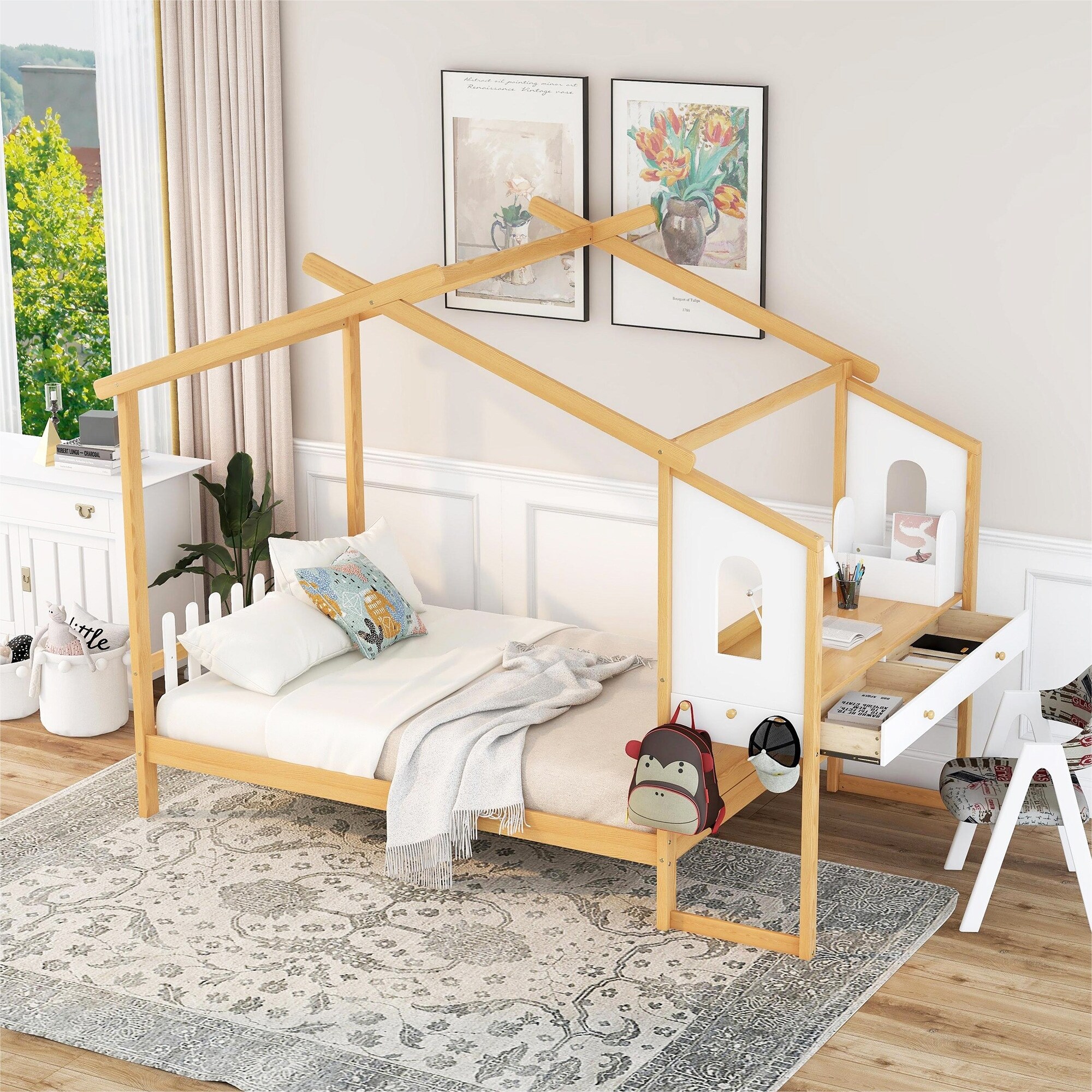 Twin/Full Size House Low Loft Bed with Trundle or 4 Drawers
