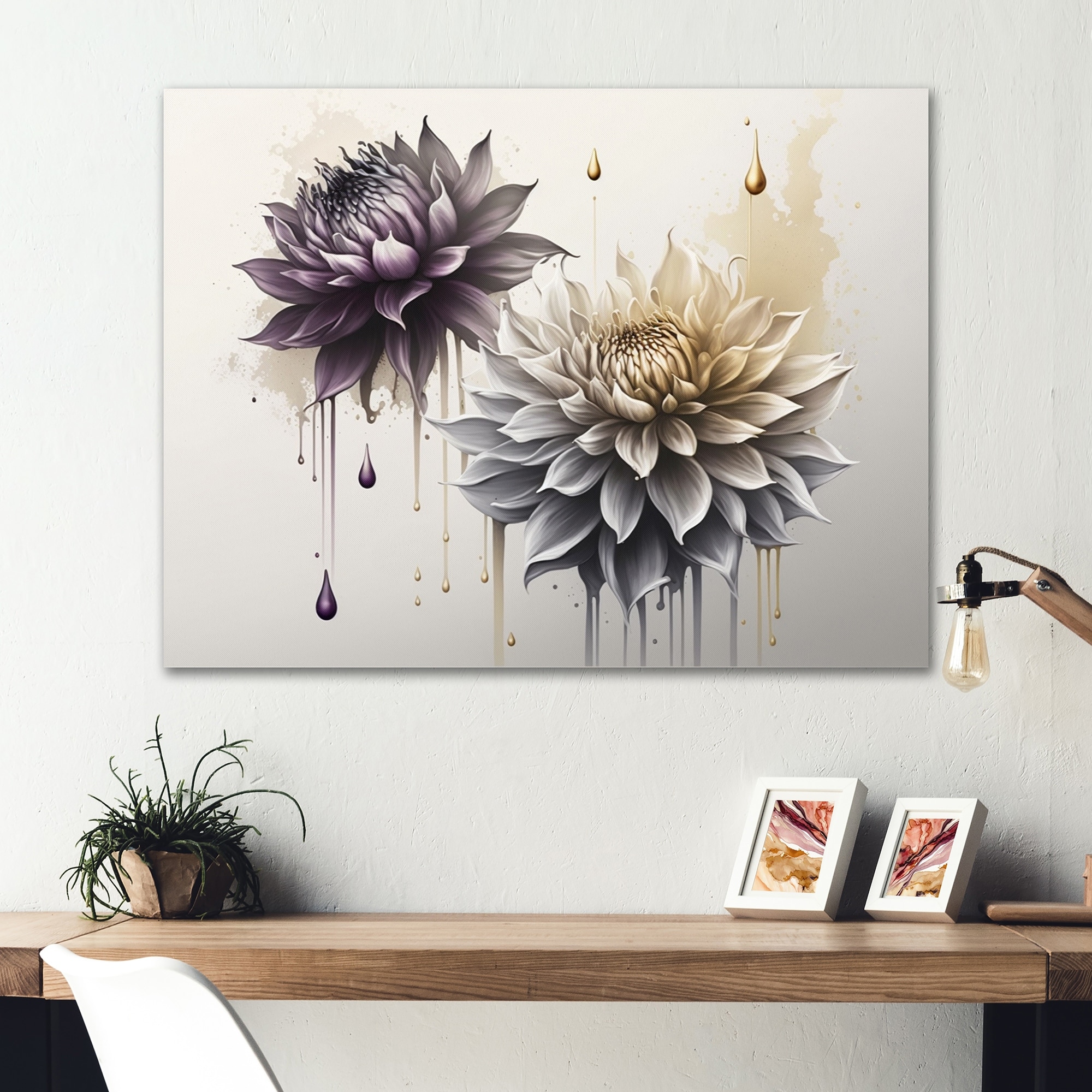 "Grey Dahlias II" Print on Floating Canvas