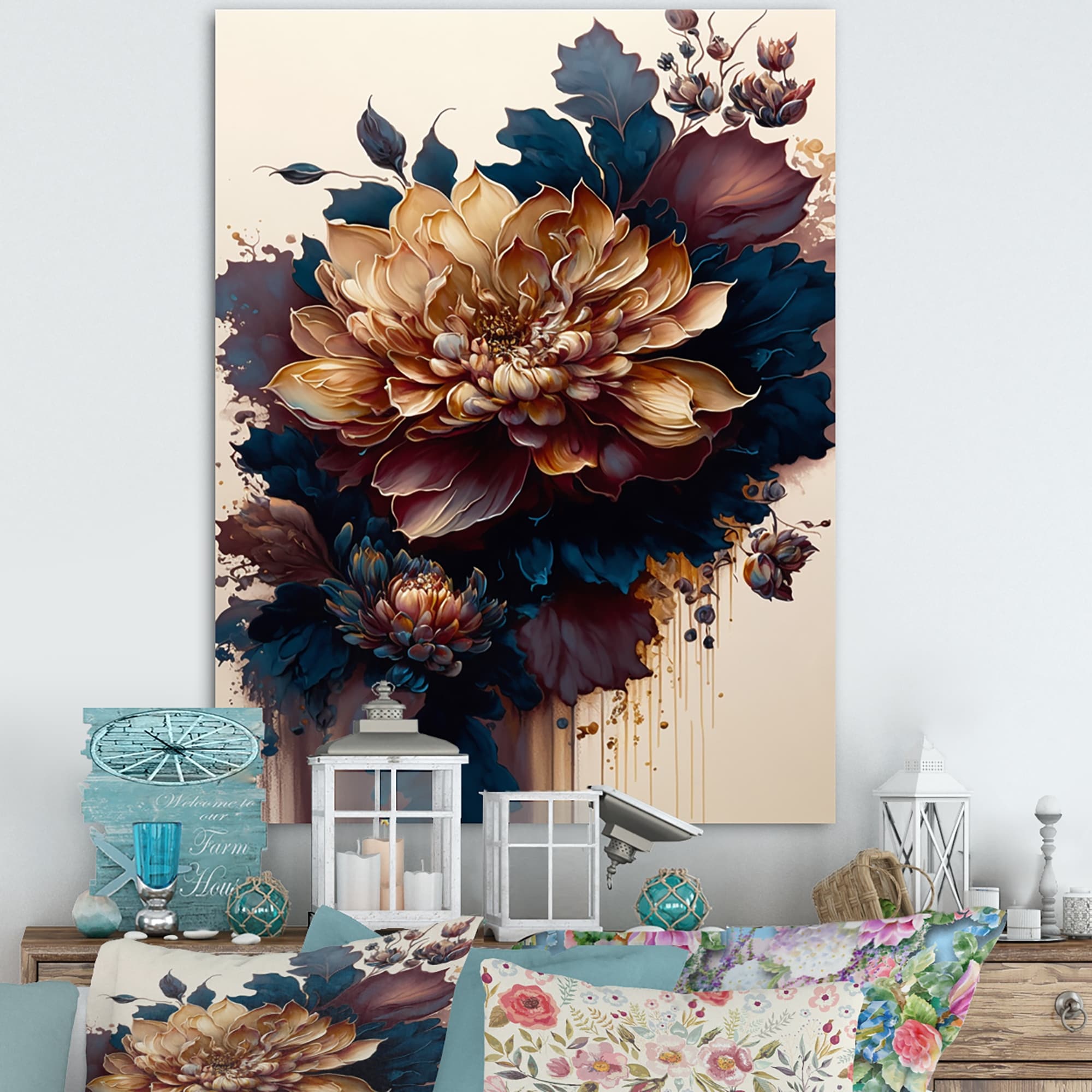 Designart 'Burgundy And Blue Dahlia Bunch II' Floral & Botanical Canvas Wall Art