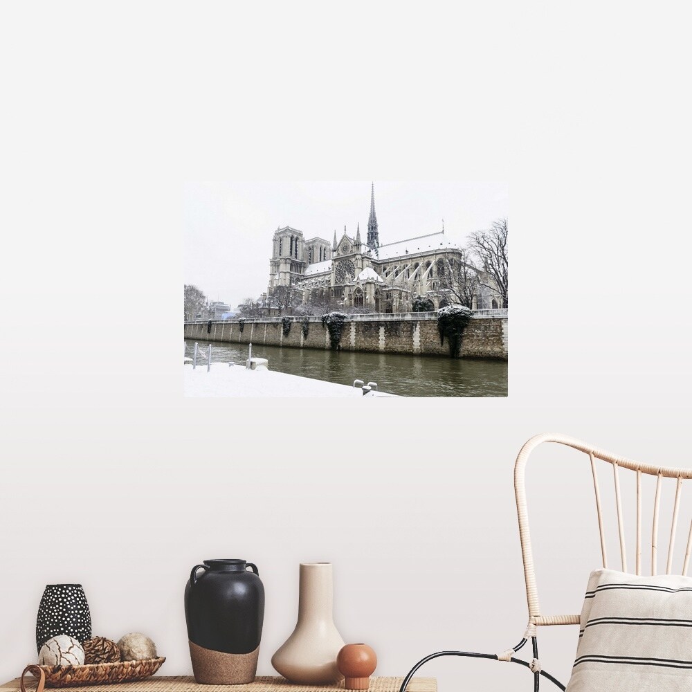 "Buildings near Seine river, Notre Dame, Paris, France" Poster Print