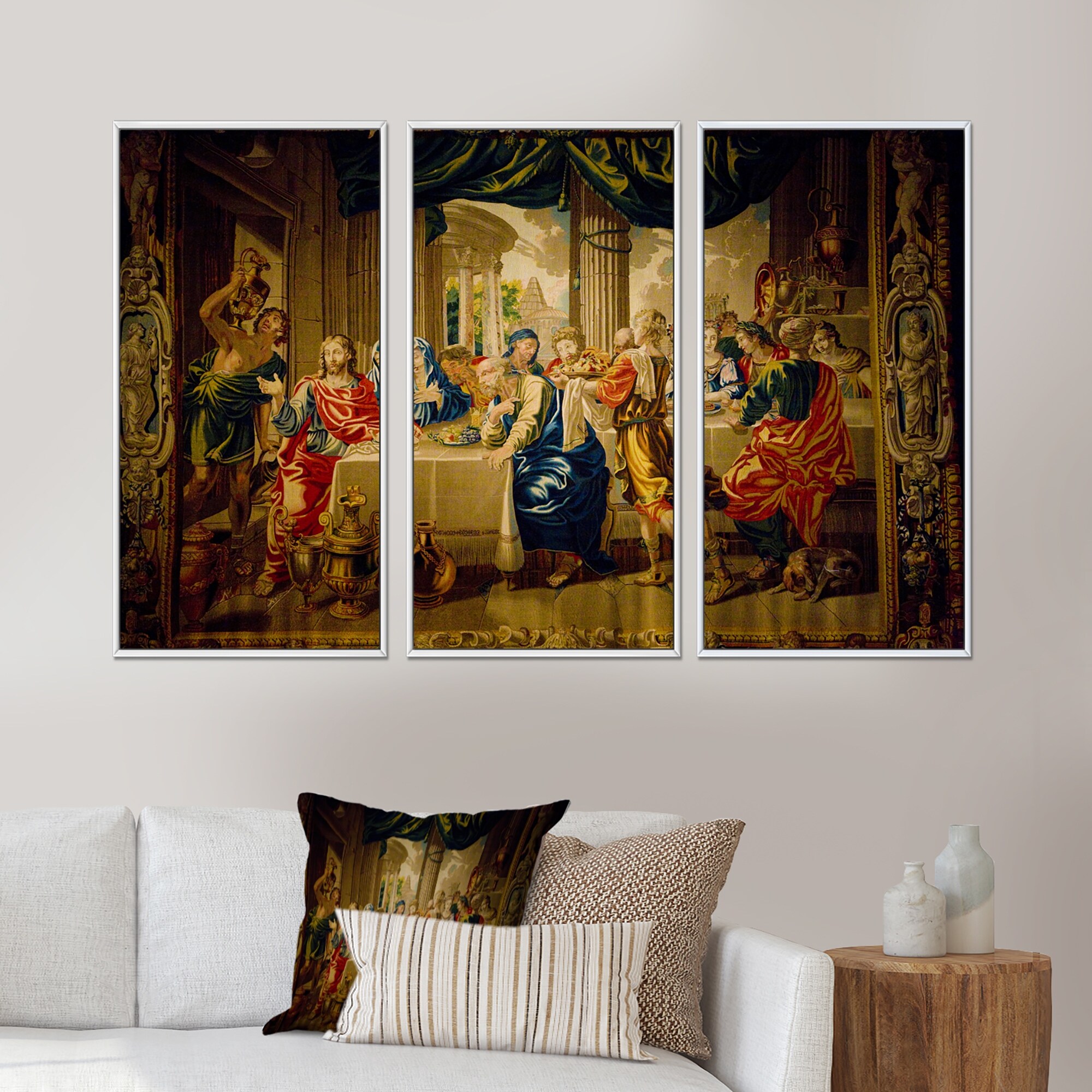 Designart "Jesus Tapisery Cathedral in notre dame " Religious Framed Canvas Wall Art Print Set of 3 - 4 Colors of Frames