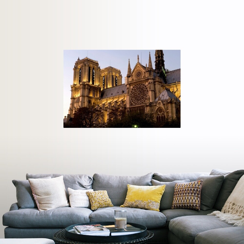 "Cathedral lit up at dusk, Notre Dame, Paris, Ile-De-France, France" Poster Print - Multi