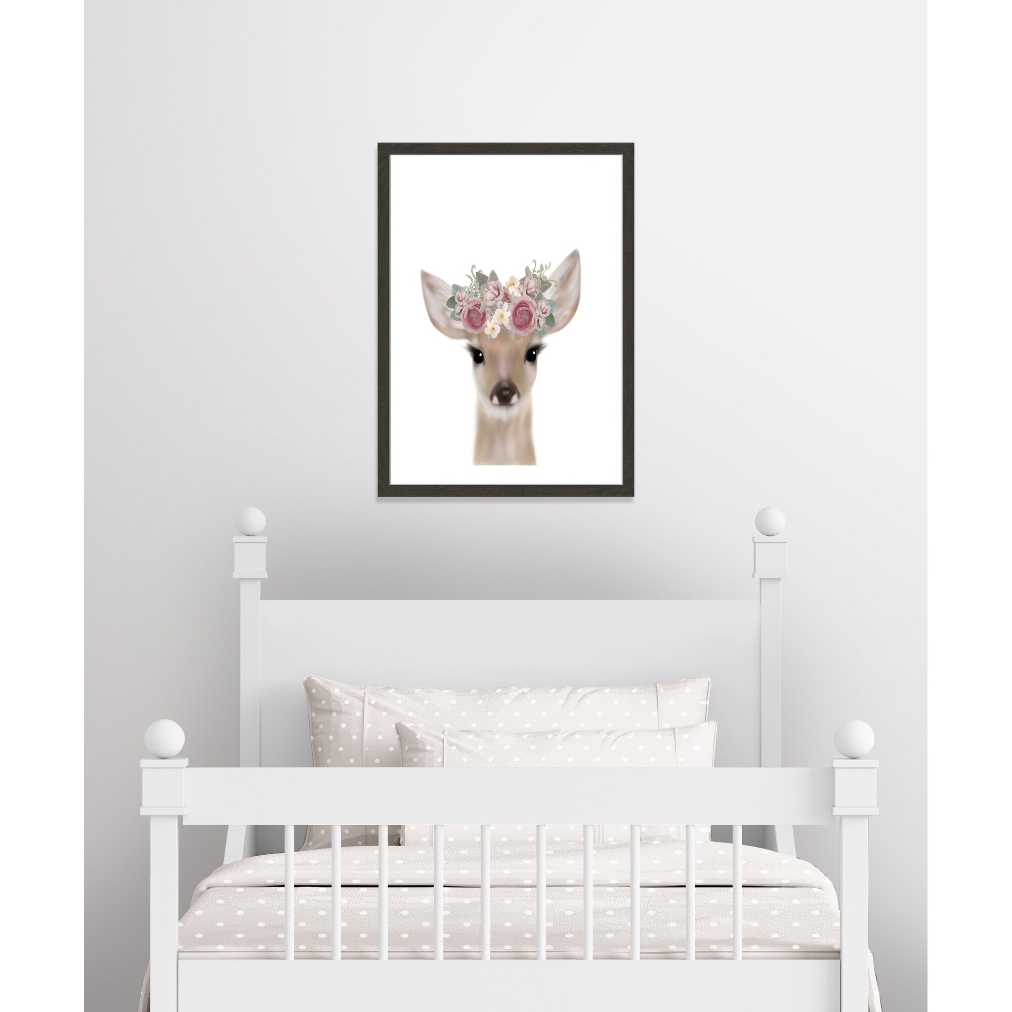 Designart "Cute Deer Floral Art I" Animals Framed Canvas Art Print