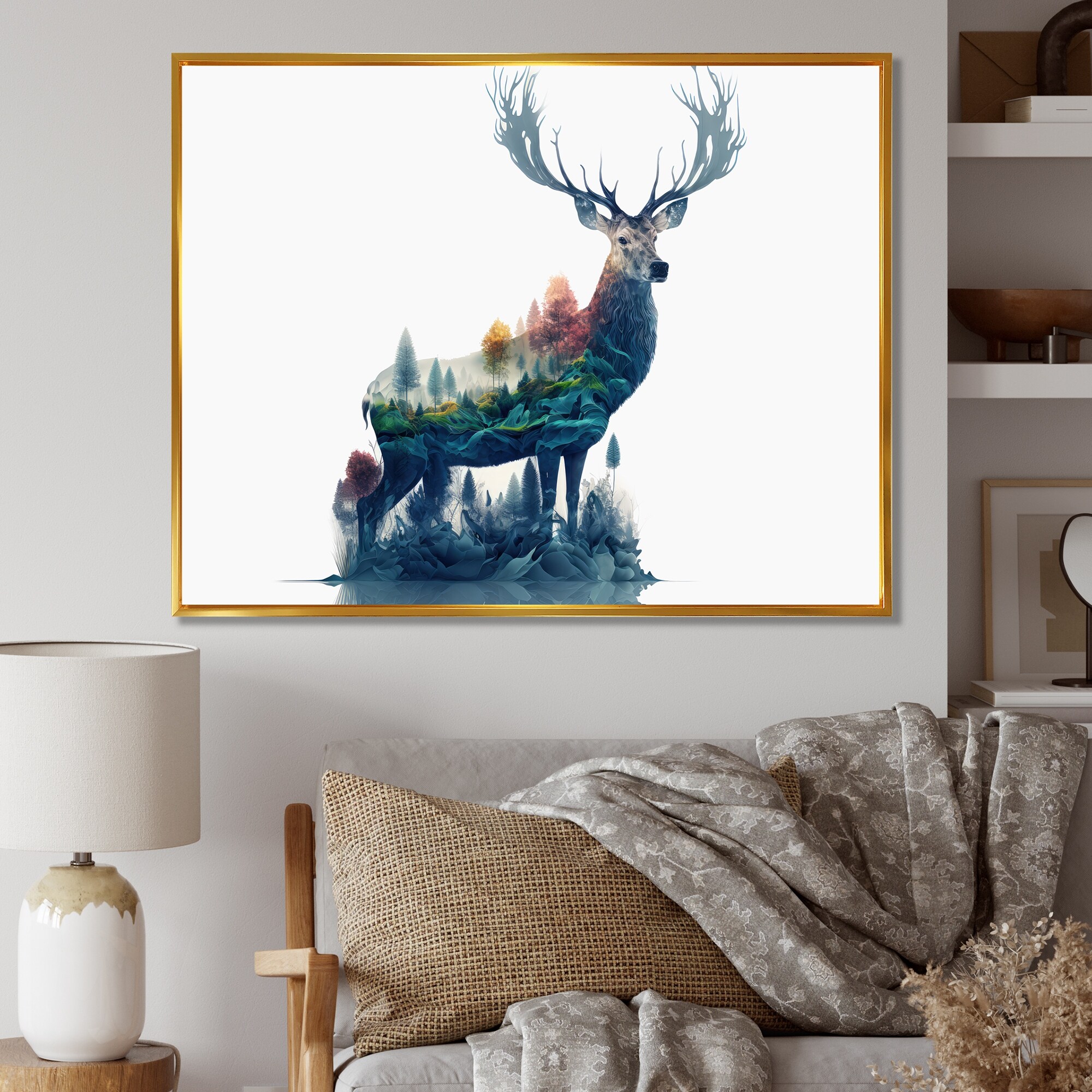 Designart "Double Exposure of a Deer With Forest" Modern Framed Canvas Art Print
