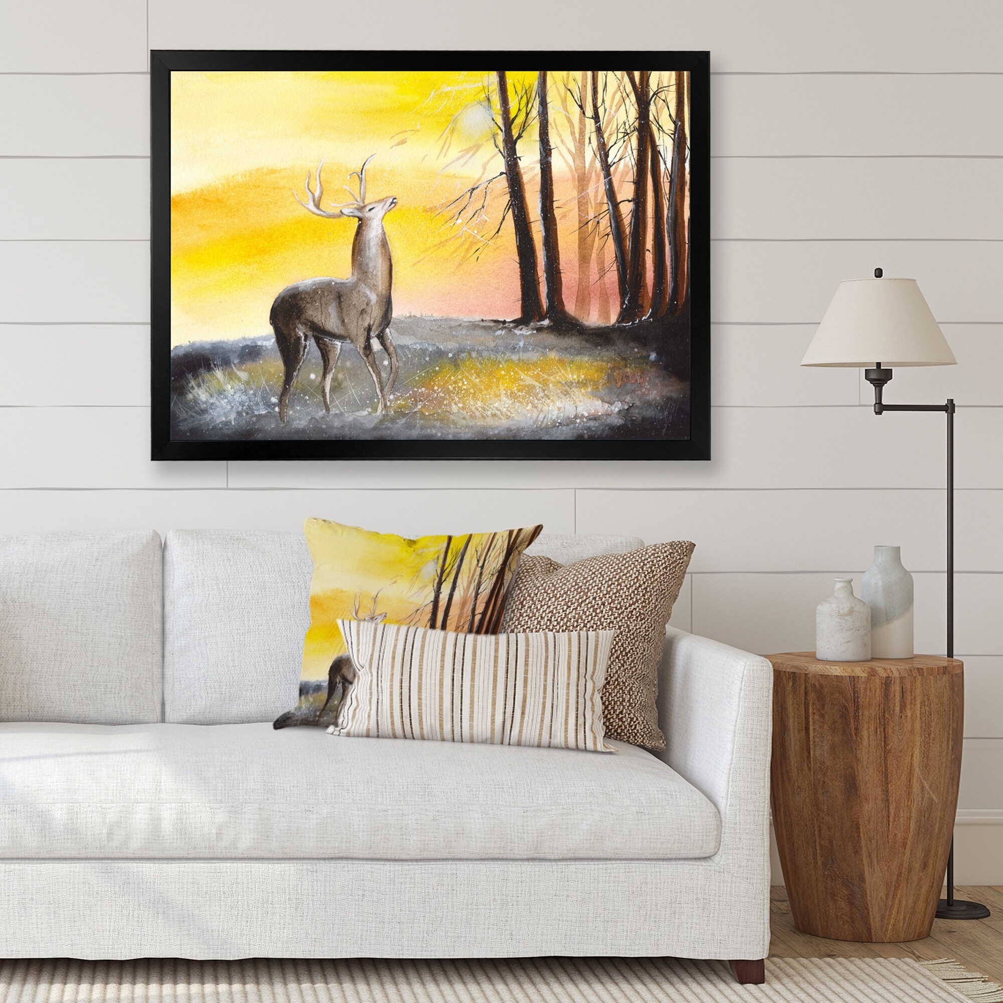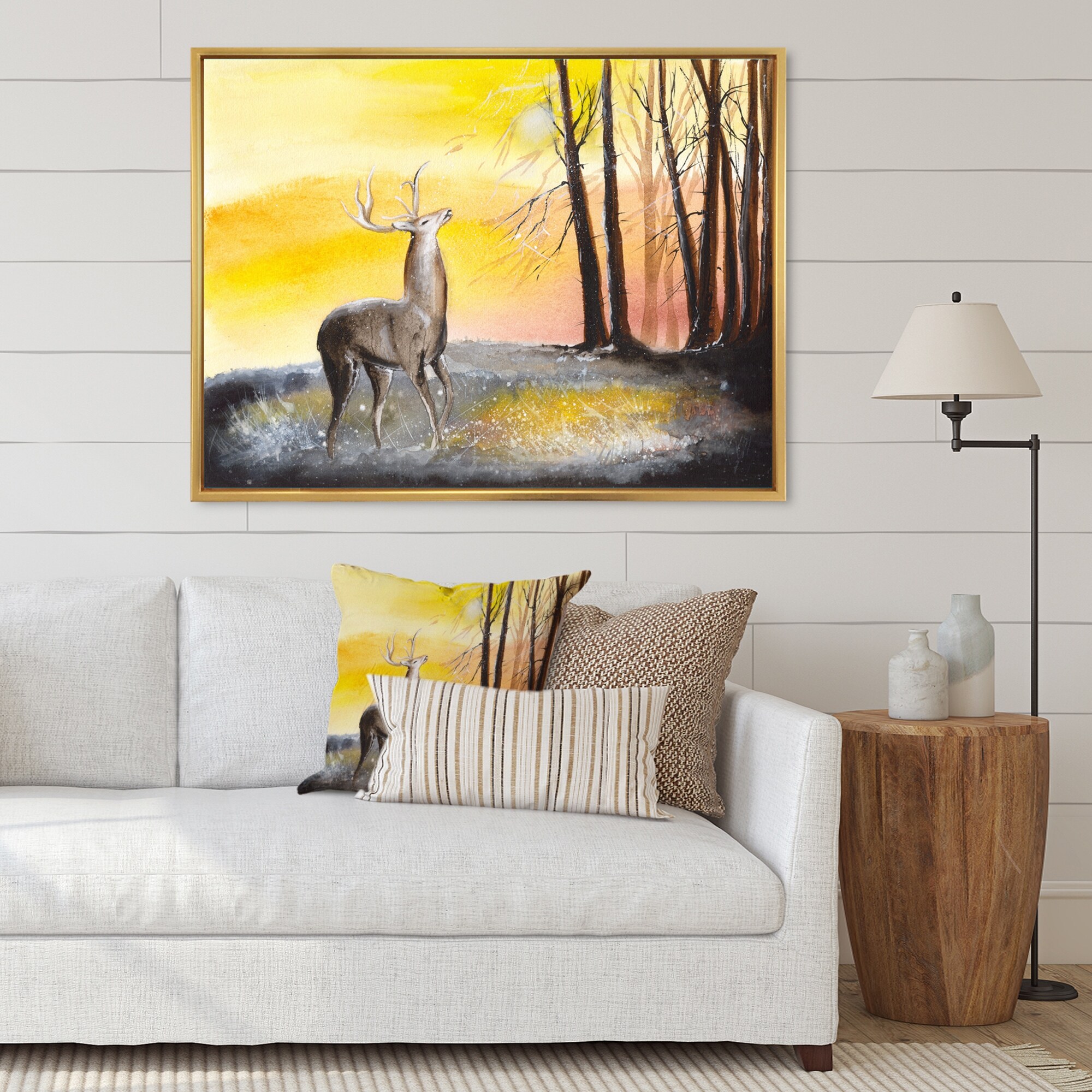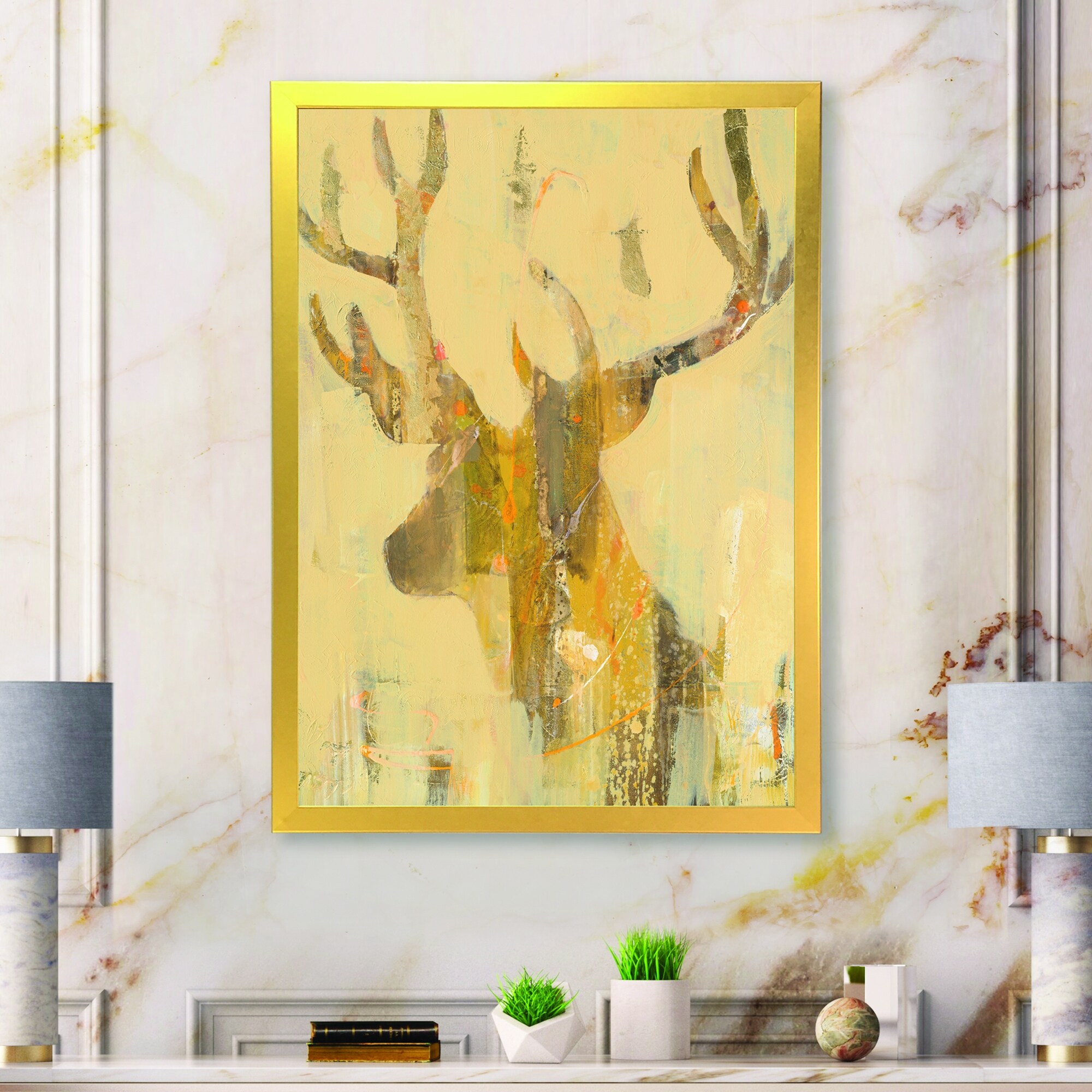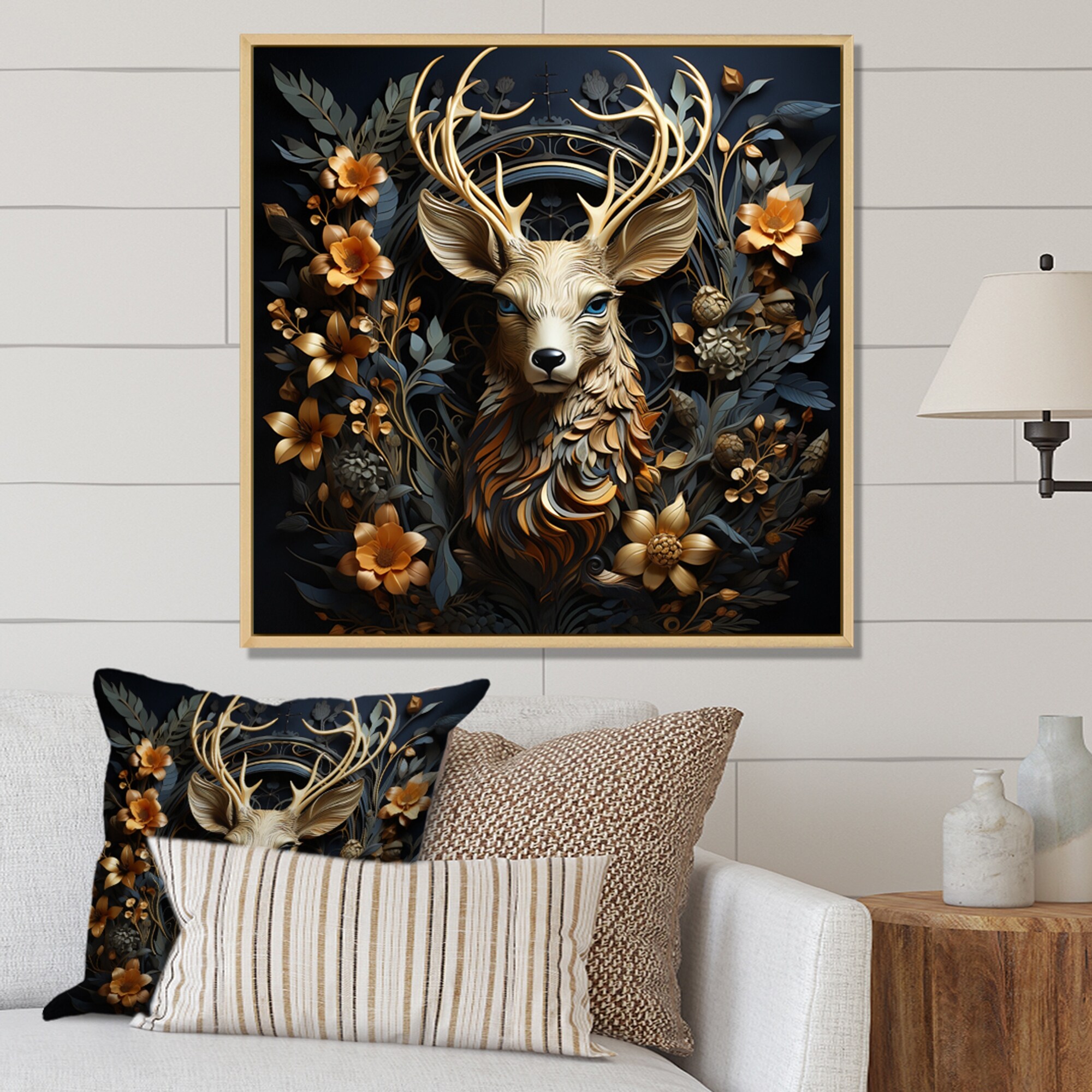 Designart "Golden Deer II" Modern Farmhouse Framed Art Print