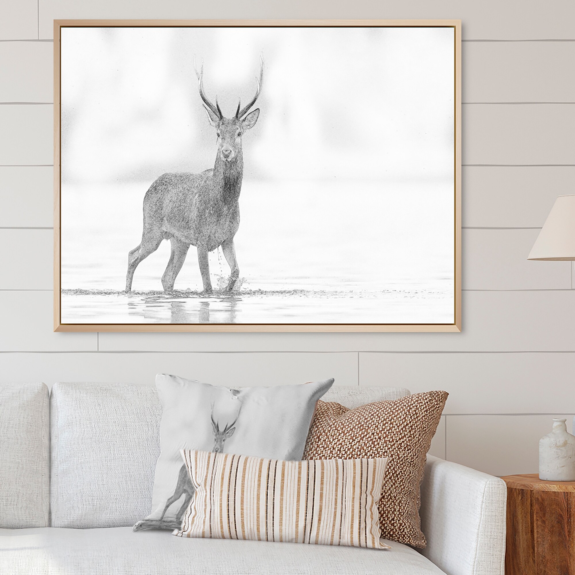 Designart "Deer Monochrome Photography I" Animals Deer Framed Canvas Prints