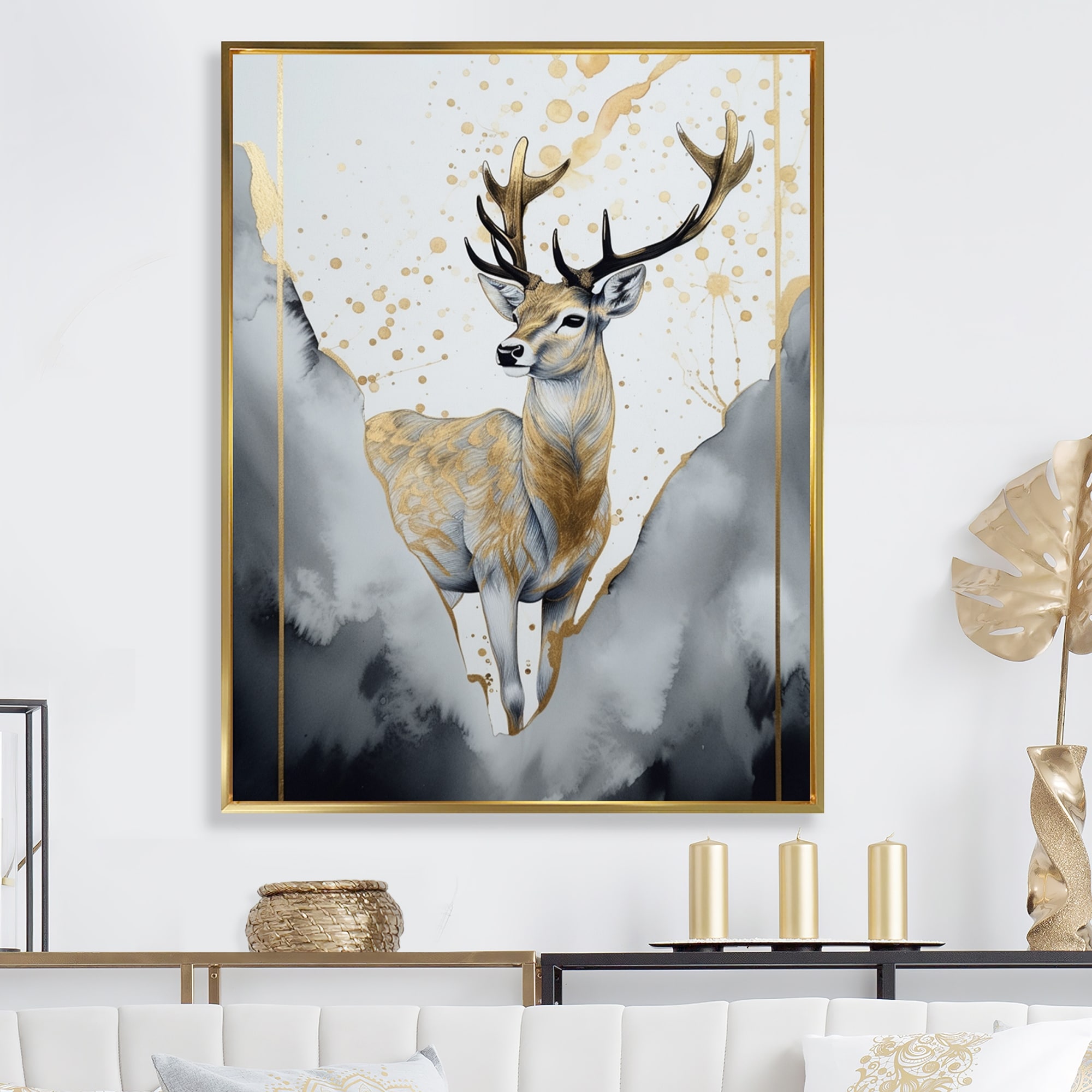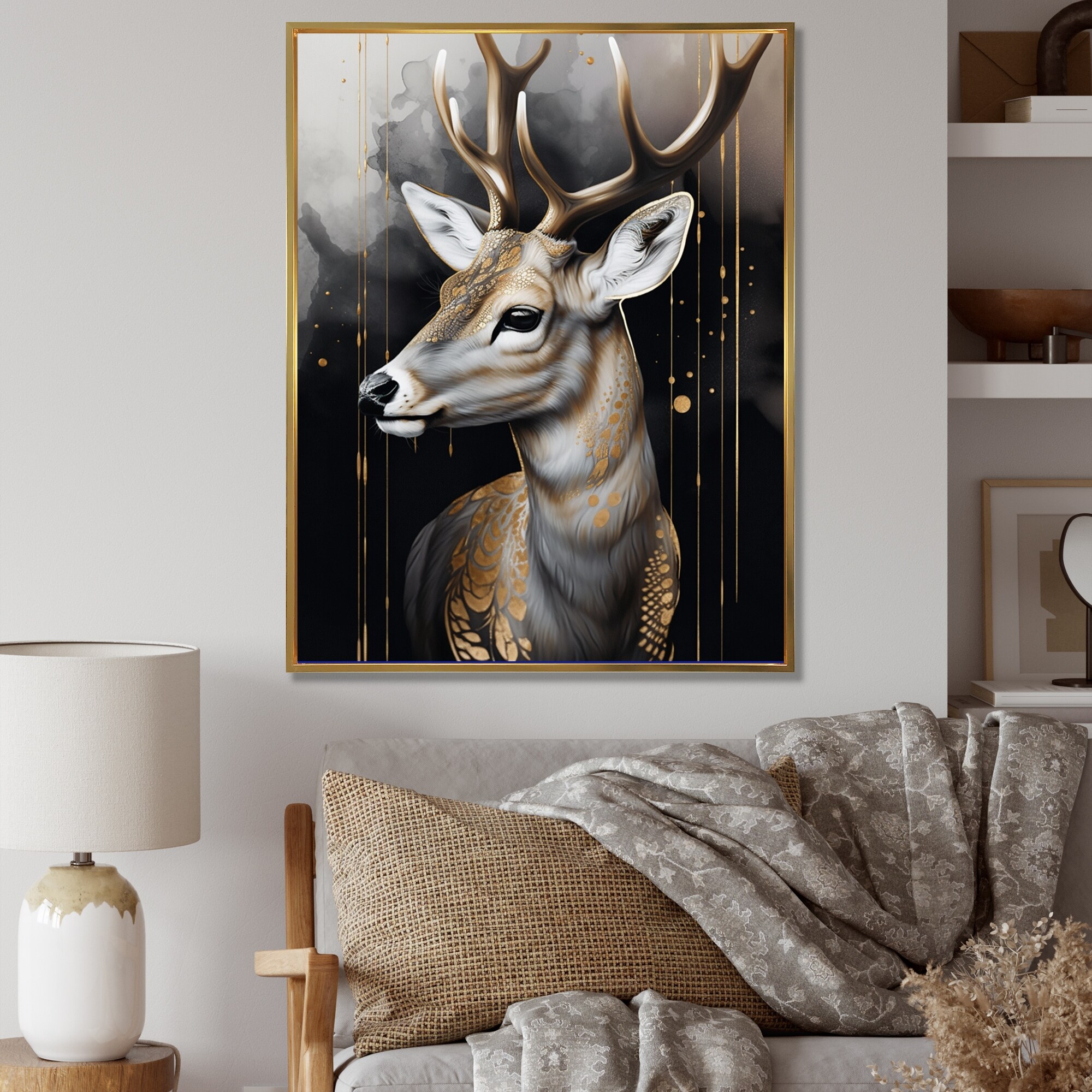 Oliver Gal 'Night Deer' Animals Wall Art Canvas Print - Gold, Black