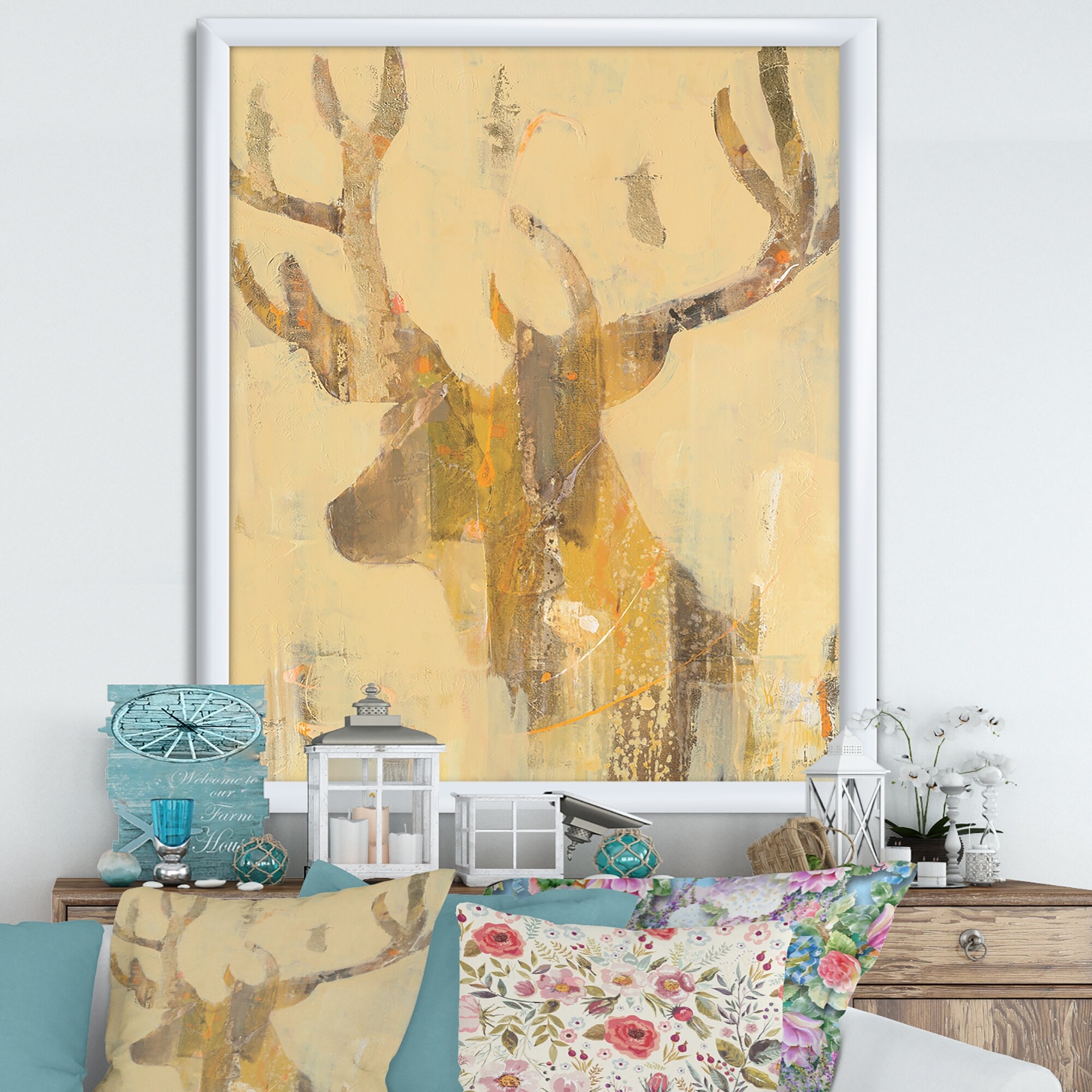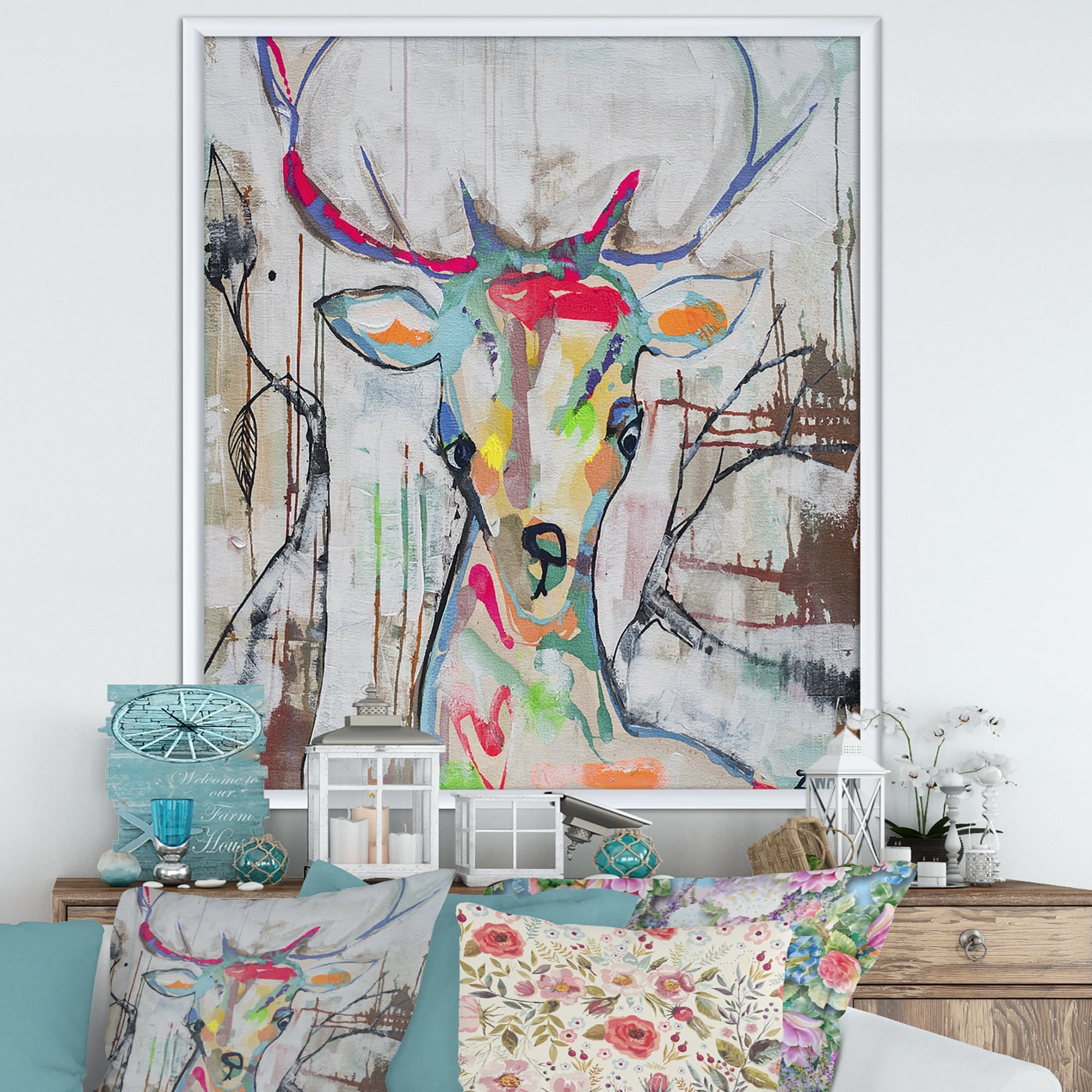 Designart "Colorful Deer I" Cottage Framed Canvas Artwork Print