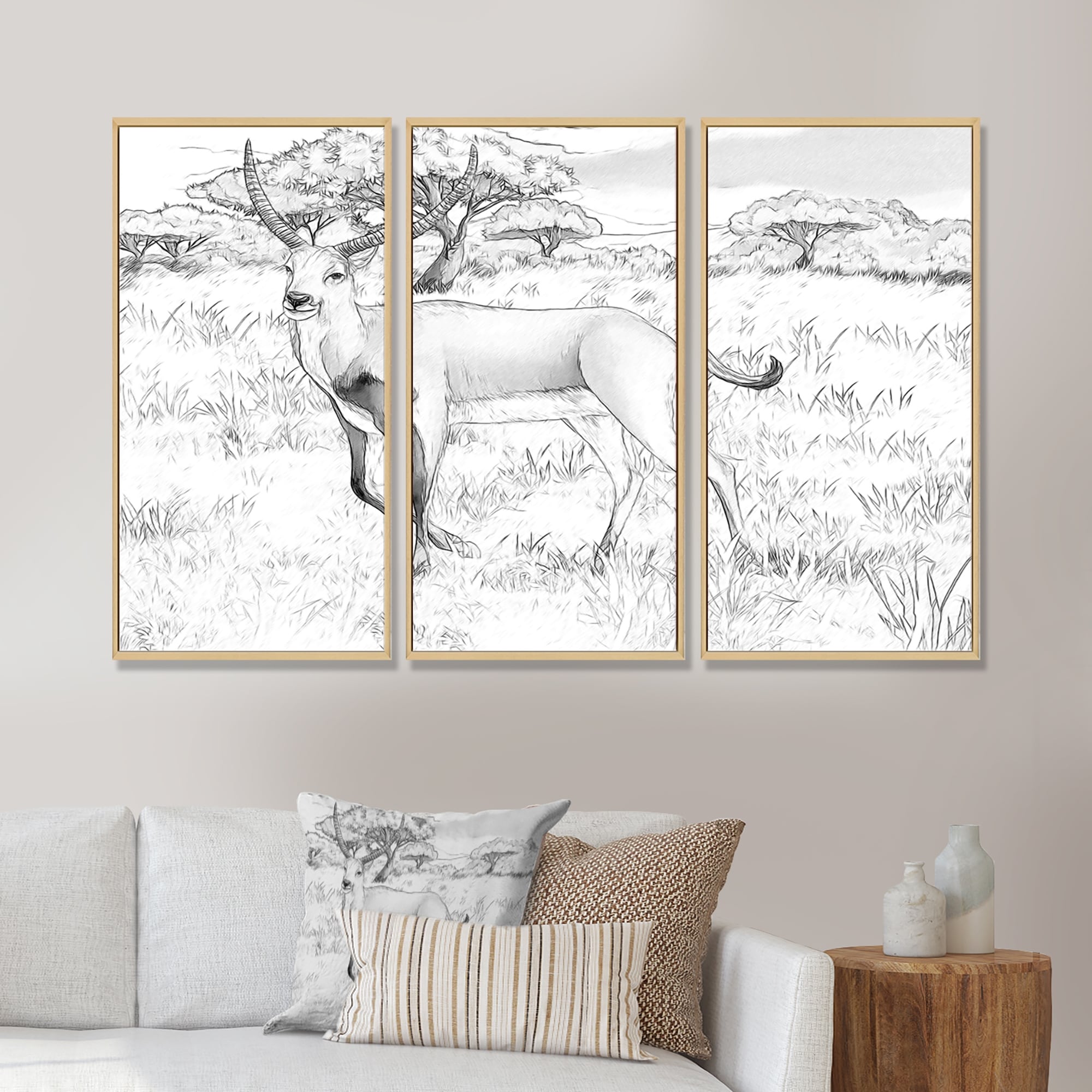 Designart "Koba Lychee Deer on the Meadows Safari" Traditional Framed Artwork Set of 3 - 4 Colors of Frames