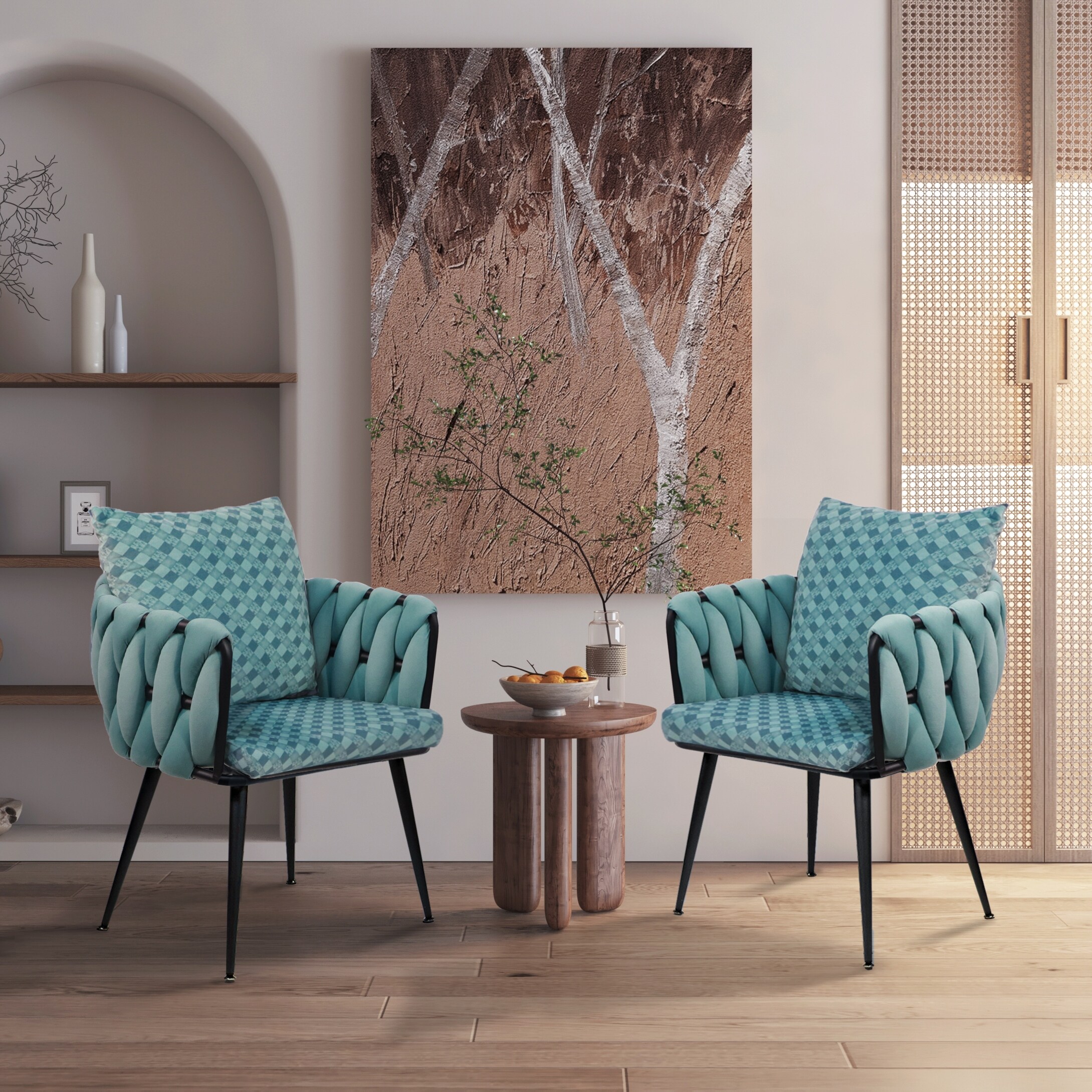 Velvet Accent Chairs Rounded Footprint Dining Chairs (Set of 2)