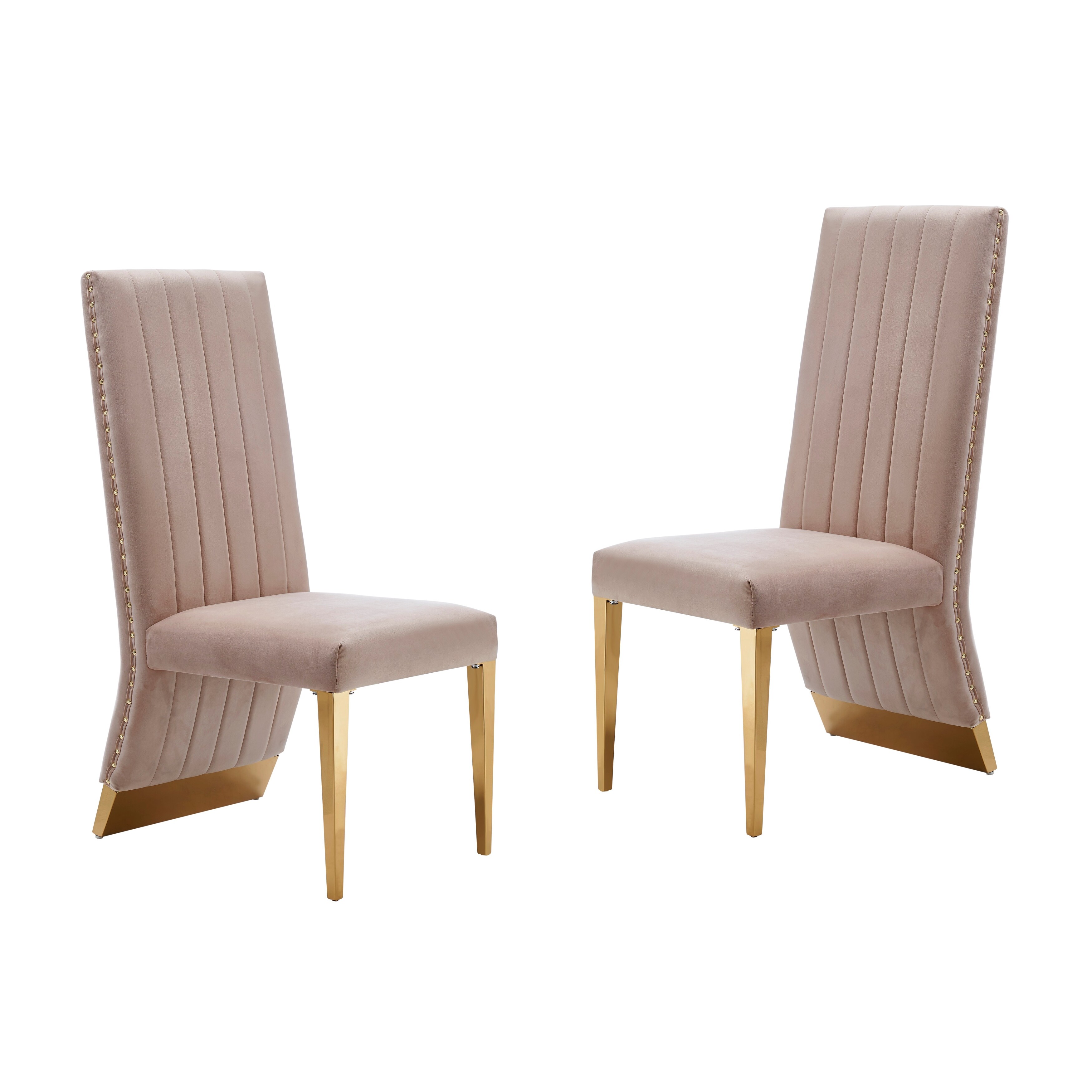 Modrest Keisha Modern Beige Velvet and Gold Dining Chair Set of 2