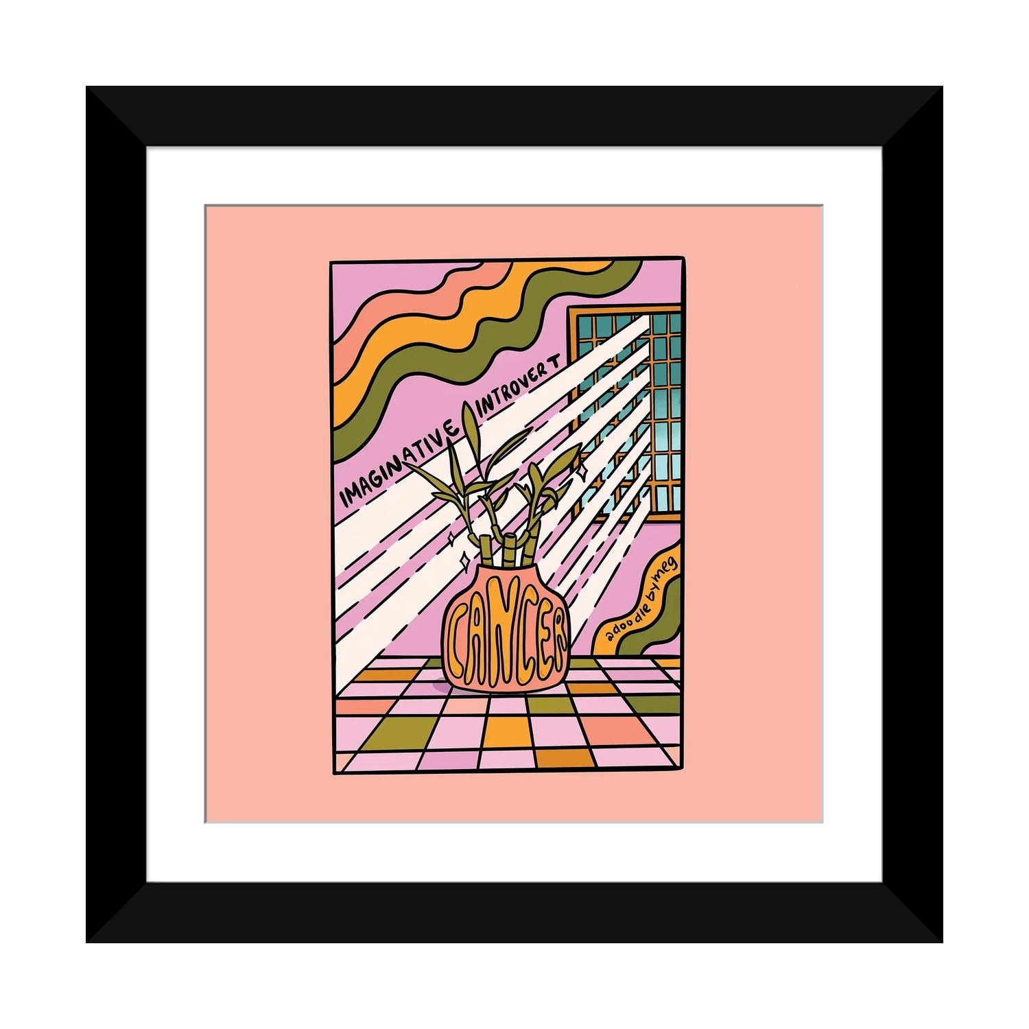 Flower Doodle II -Framed Print w/glass-Cherry Red