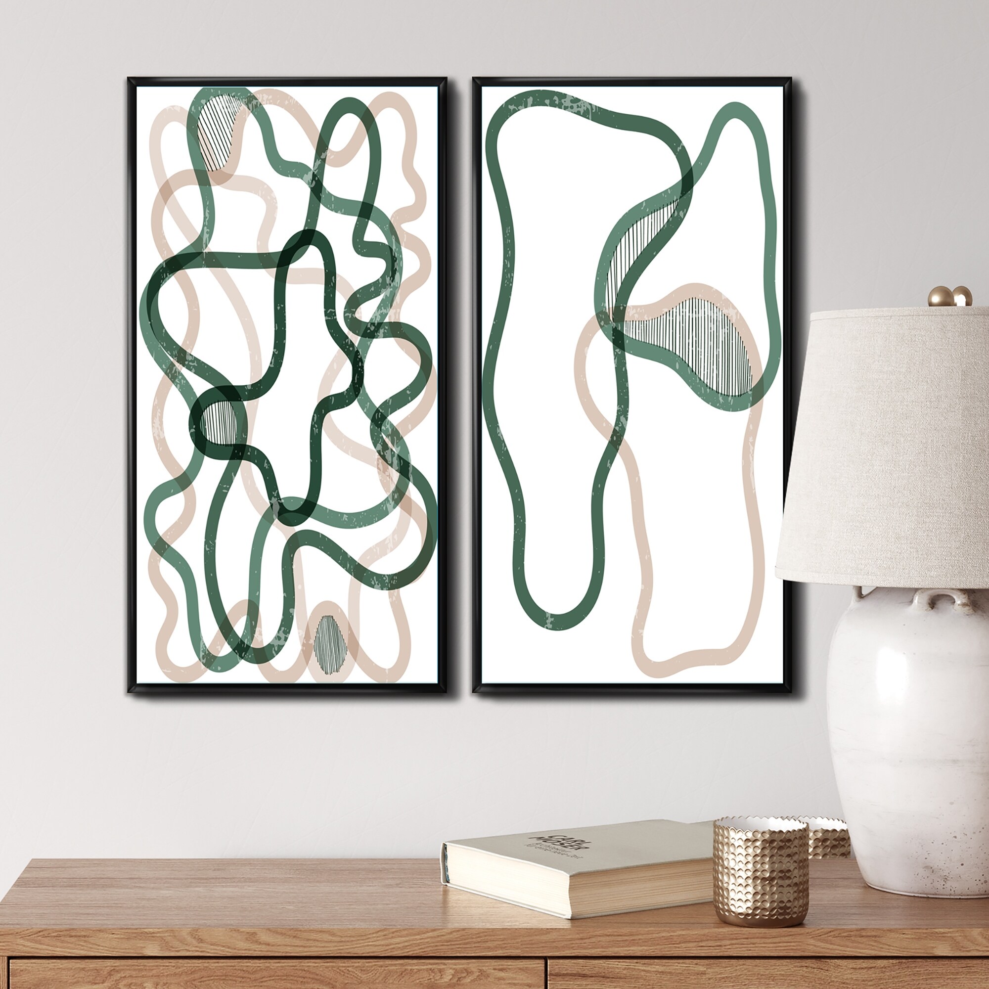 Designart "Retro Vintage Organic Boho Doodles & Geometrics I" Floral Framed Art Set of 2 Pieces
