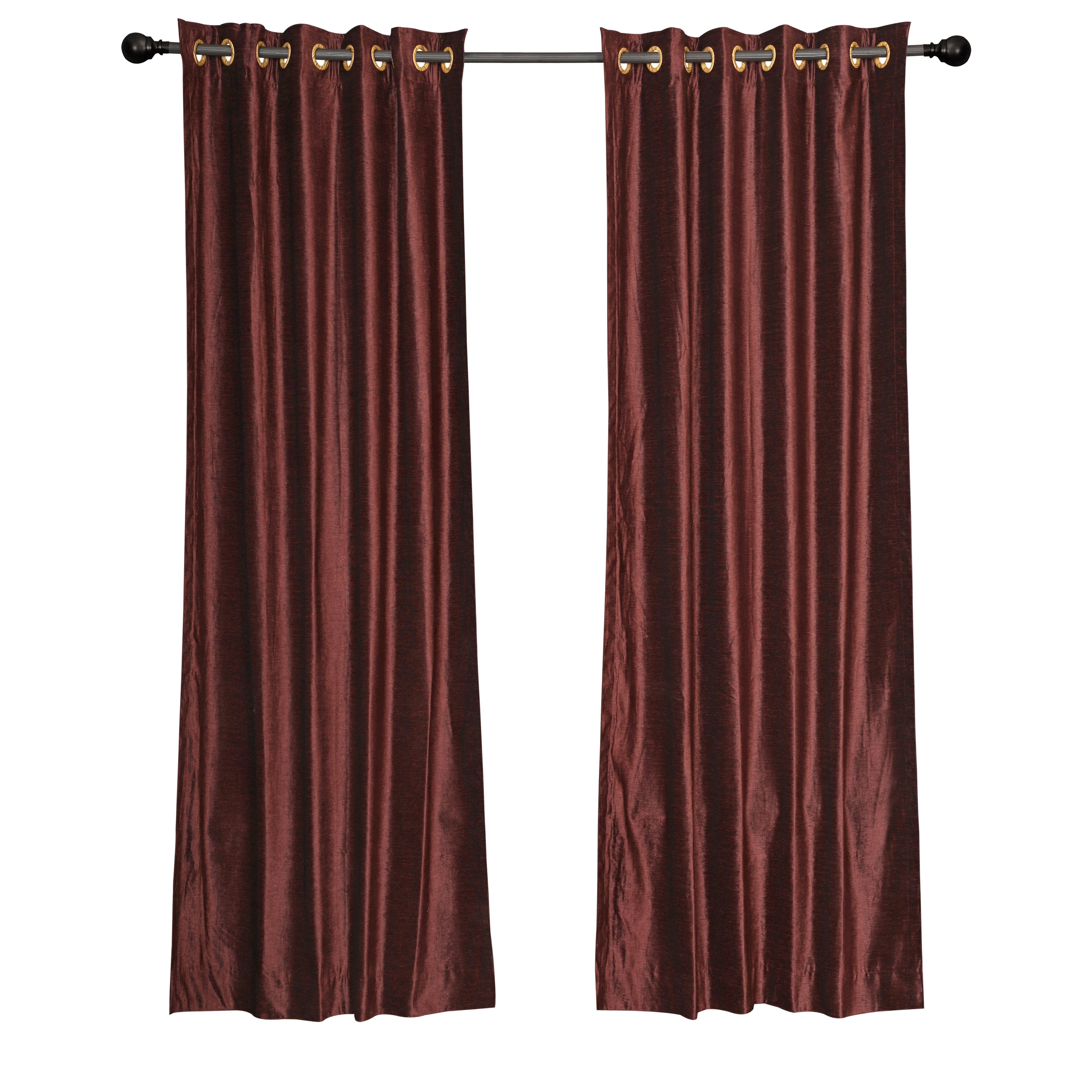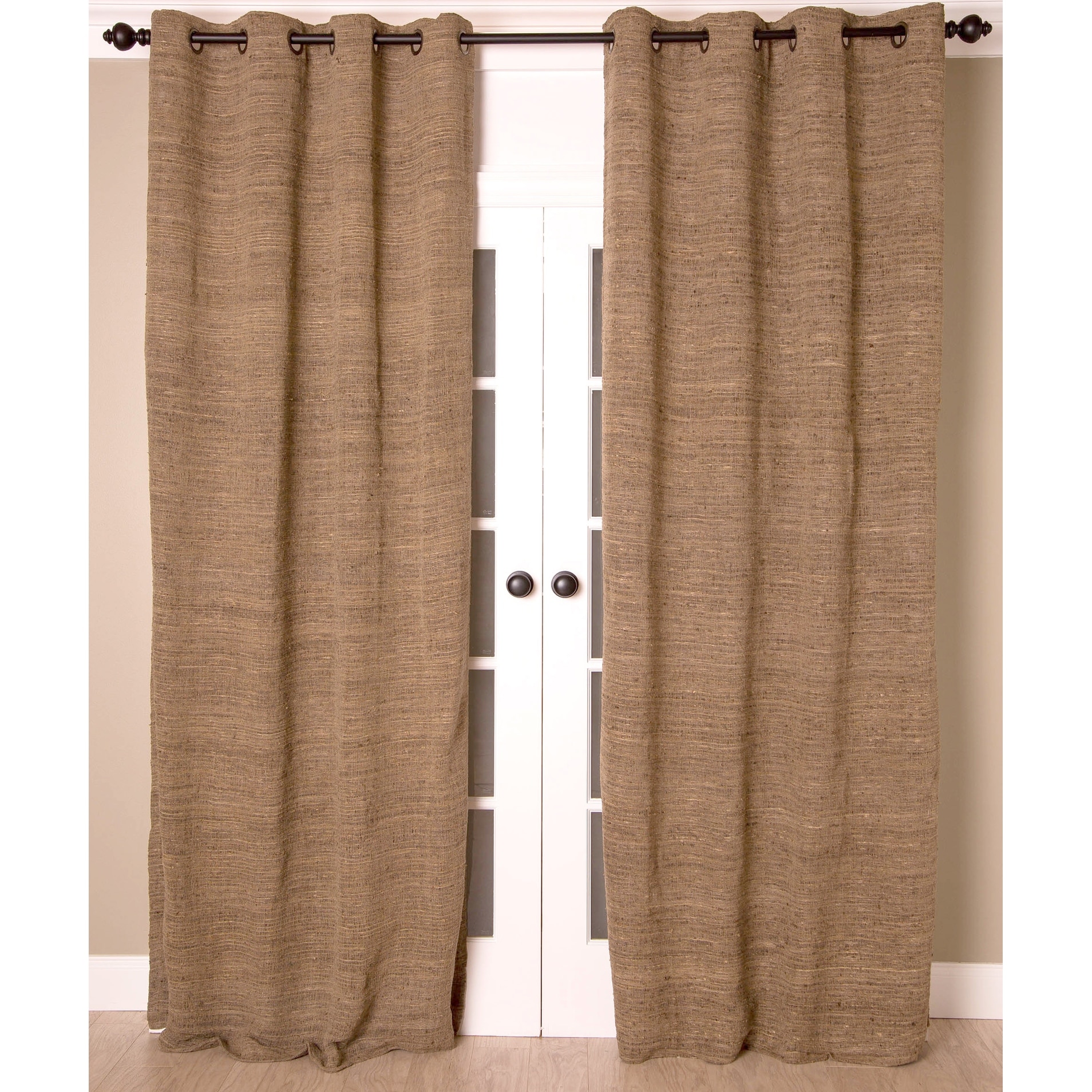 Pure Raw Silk Linen Curtain Panel, Cotton Lined with Grommets - Single Curtain Panel