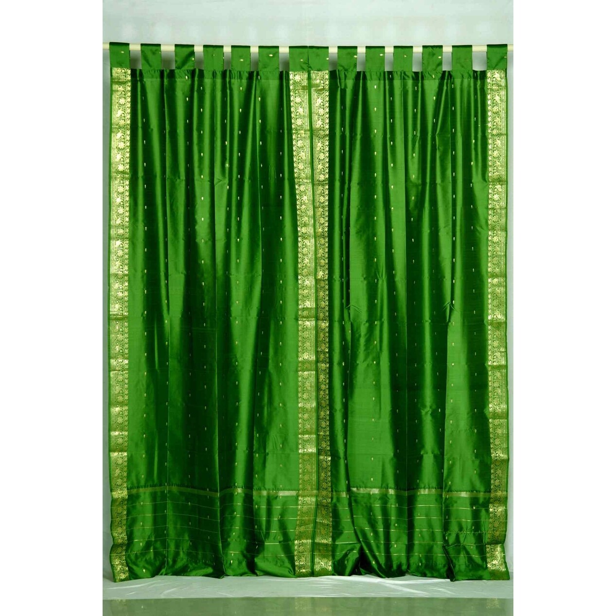 Forest Green Tab Top Sheer Sari Curtain / Drape / Panel - Pair
