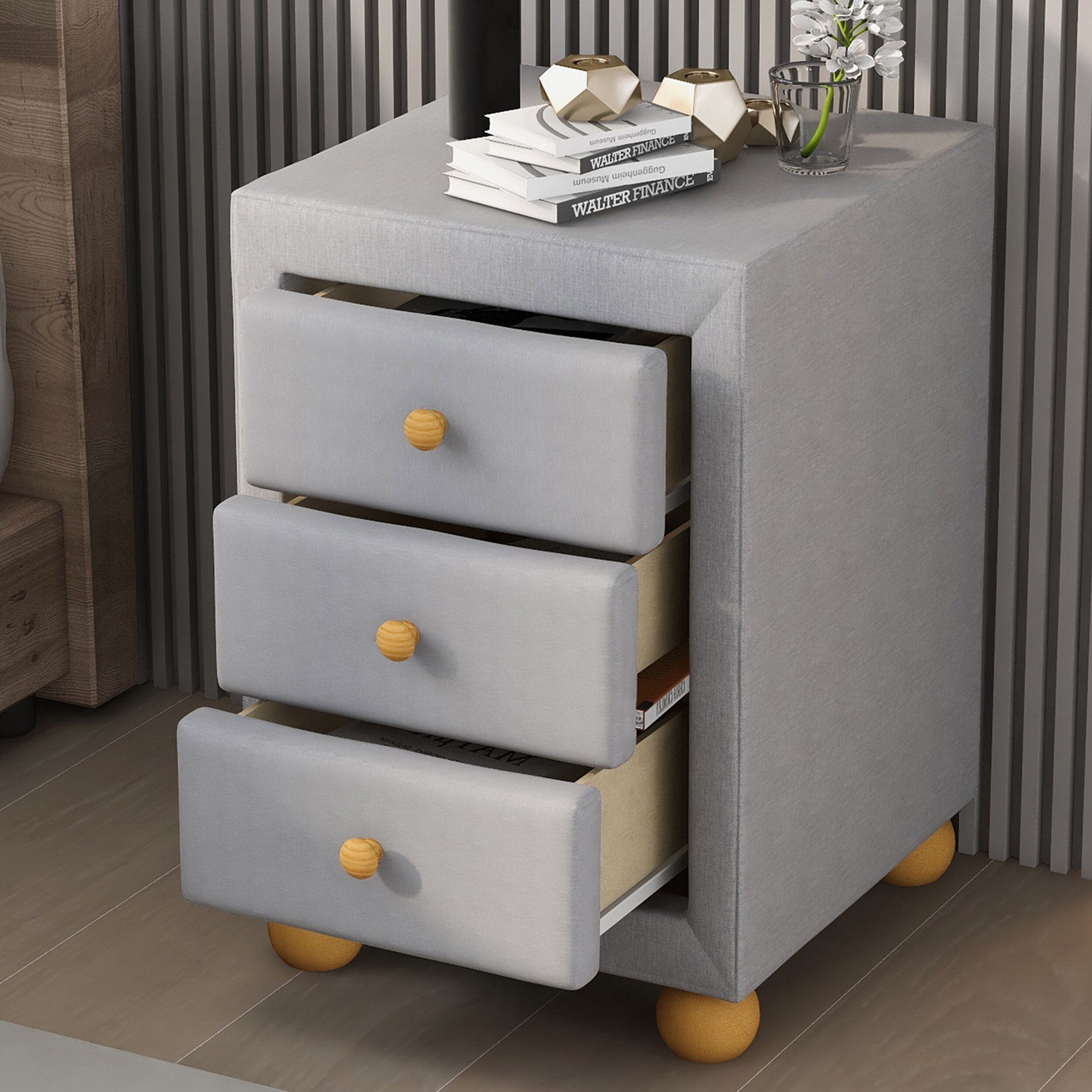 3 Drawer Nightstand, Gray