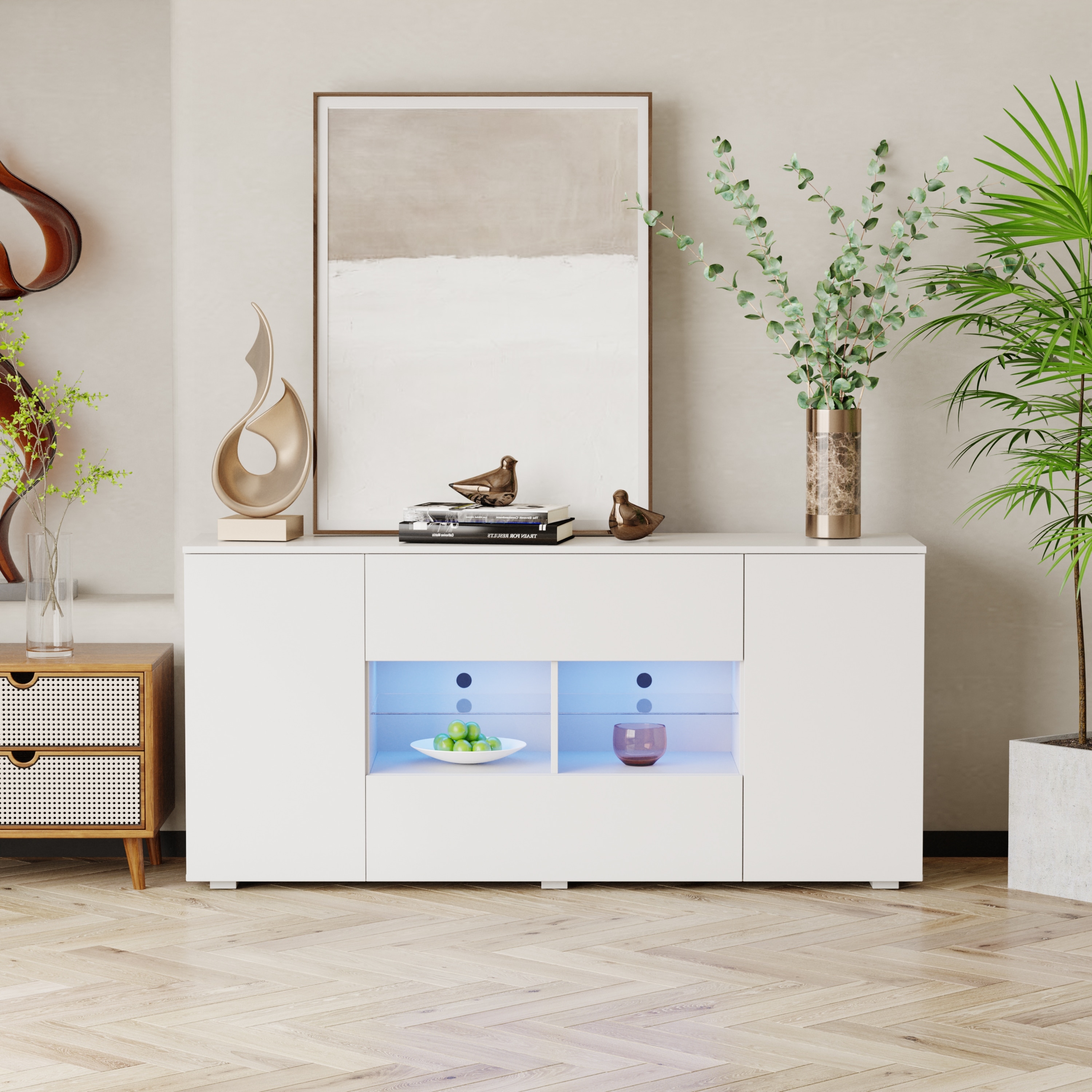 Modern TV Stand with LED Lights and Spacious Storage Drawers