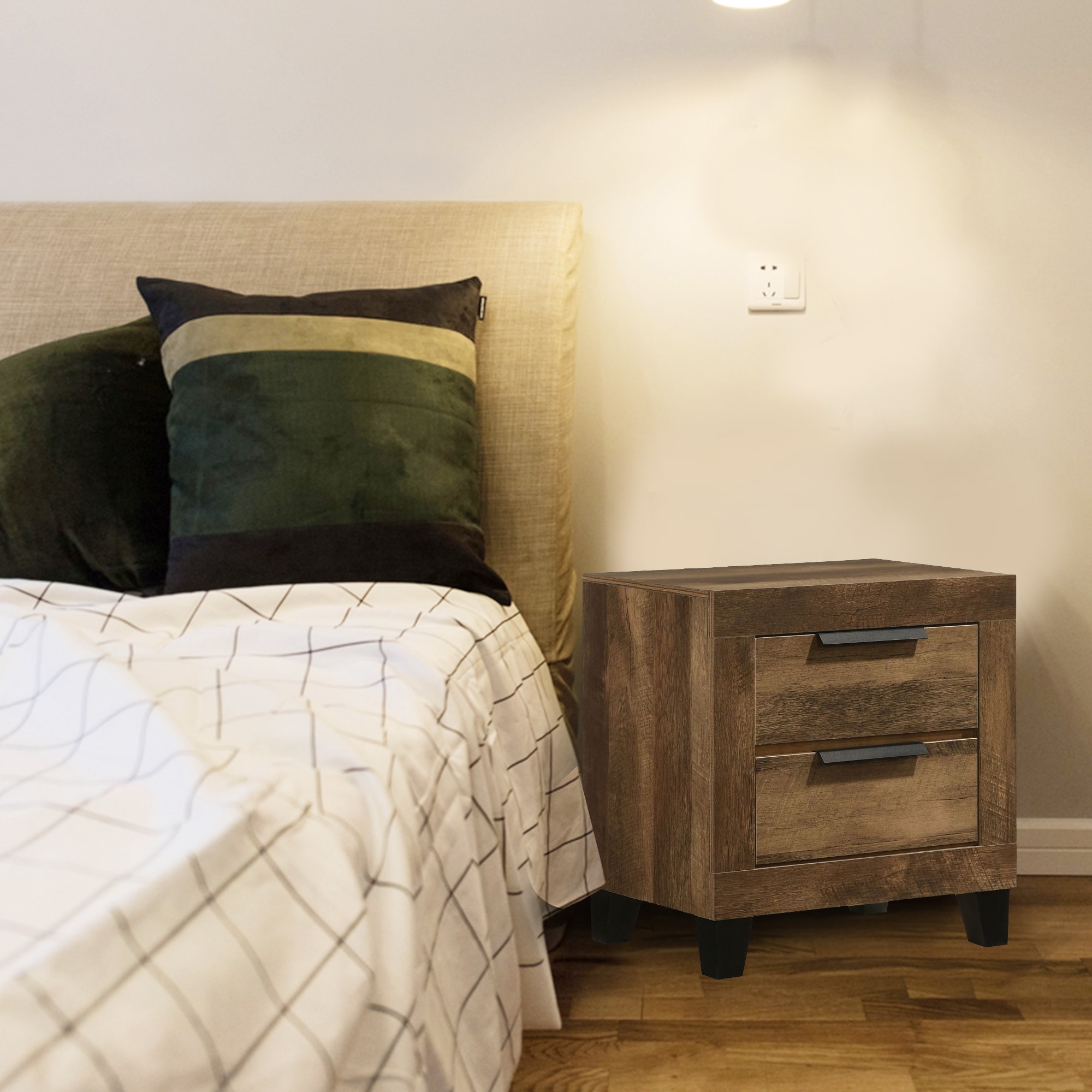 Wooden Nightstand with 2 Drawers in Light Walnut