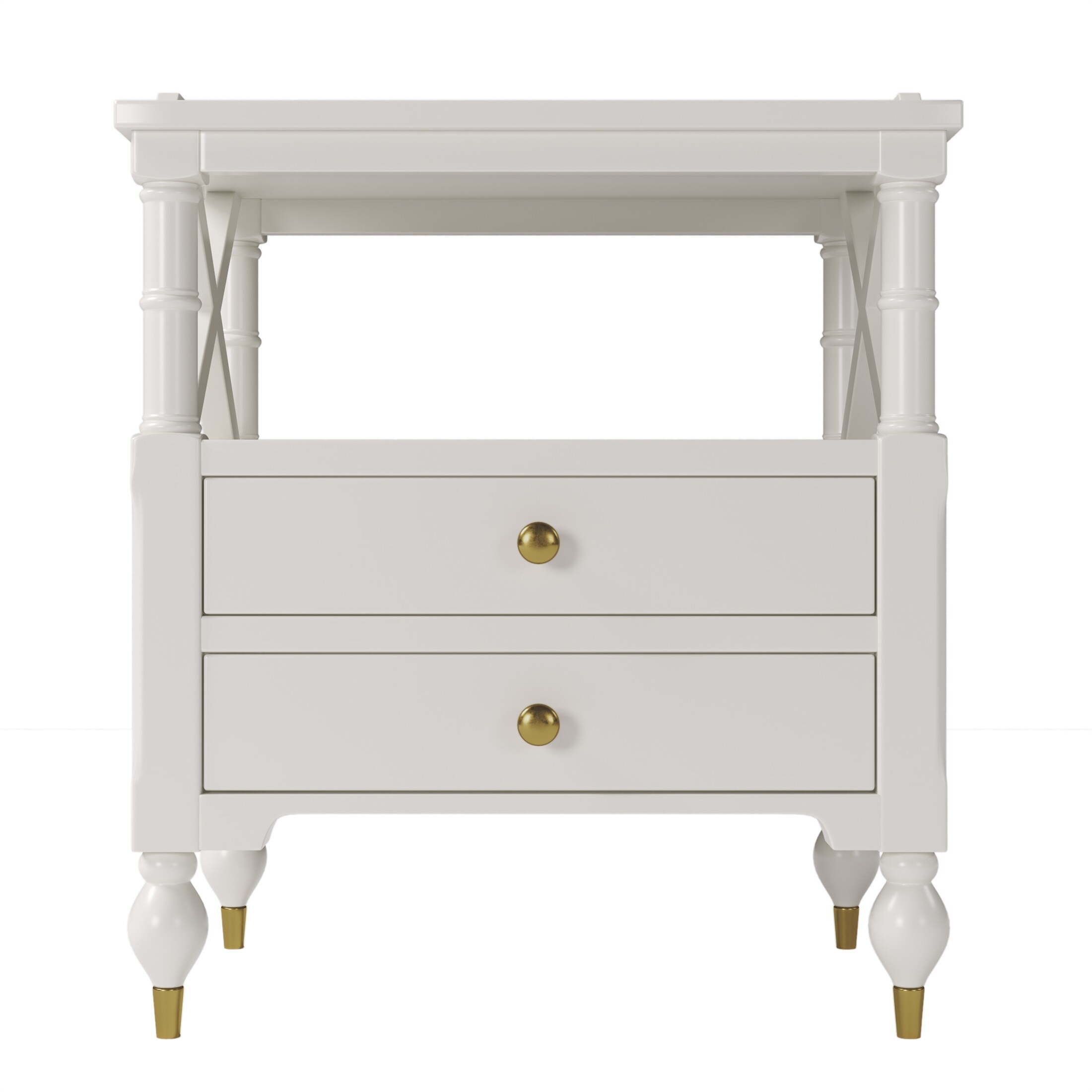 25.75" White Two Drawer Nightstand with Gold Pulls