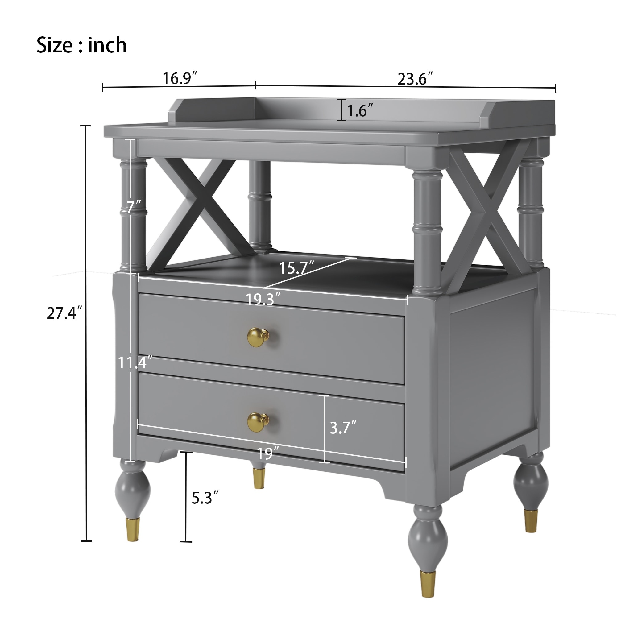 Nightstand with 2 Drawers in Gray