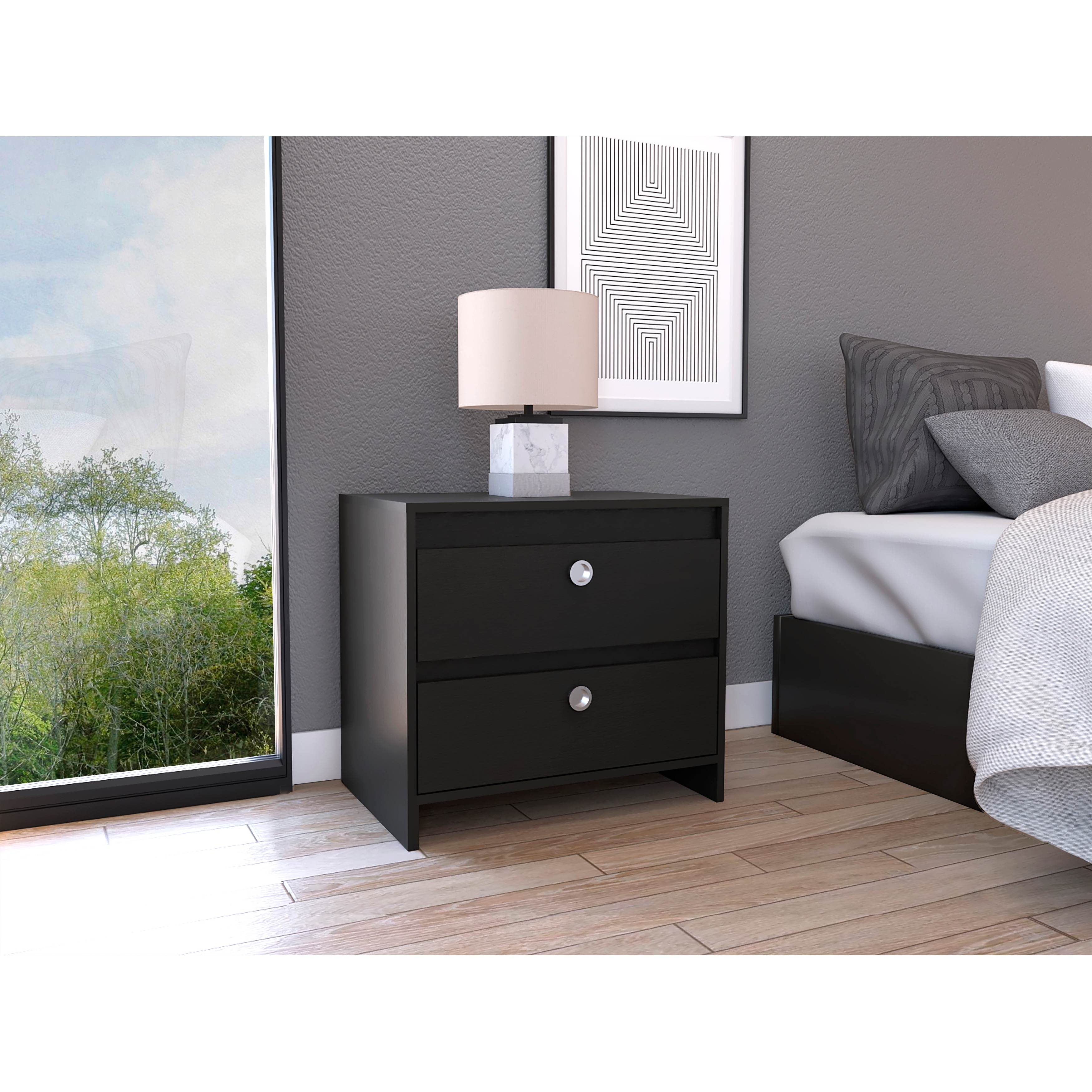 Nightstand in Black with 2 Drawer