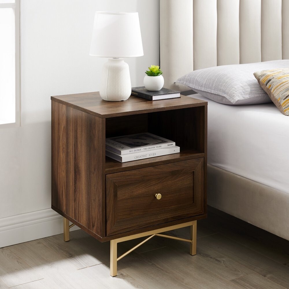 Modern Single Drawer Nightstand, Dark Walnut
