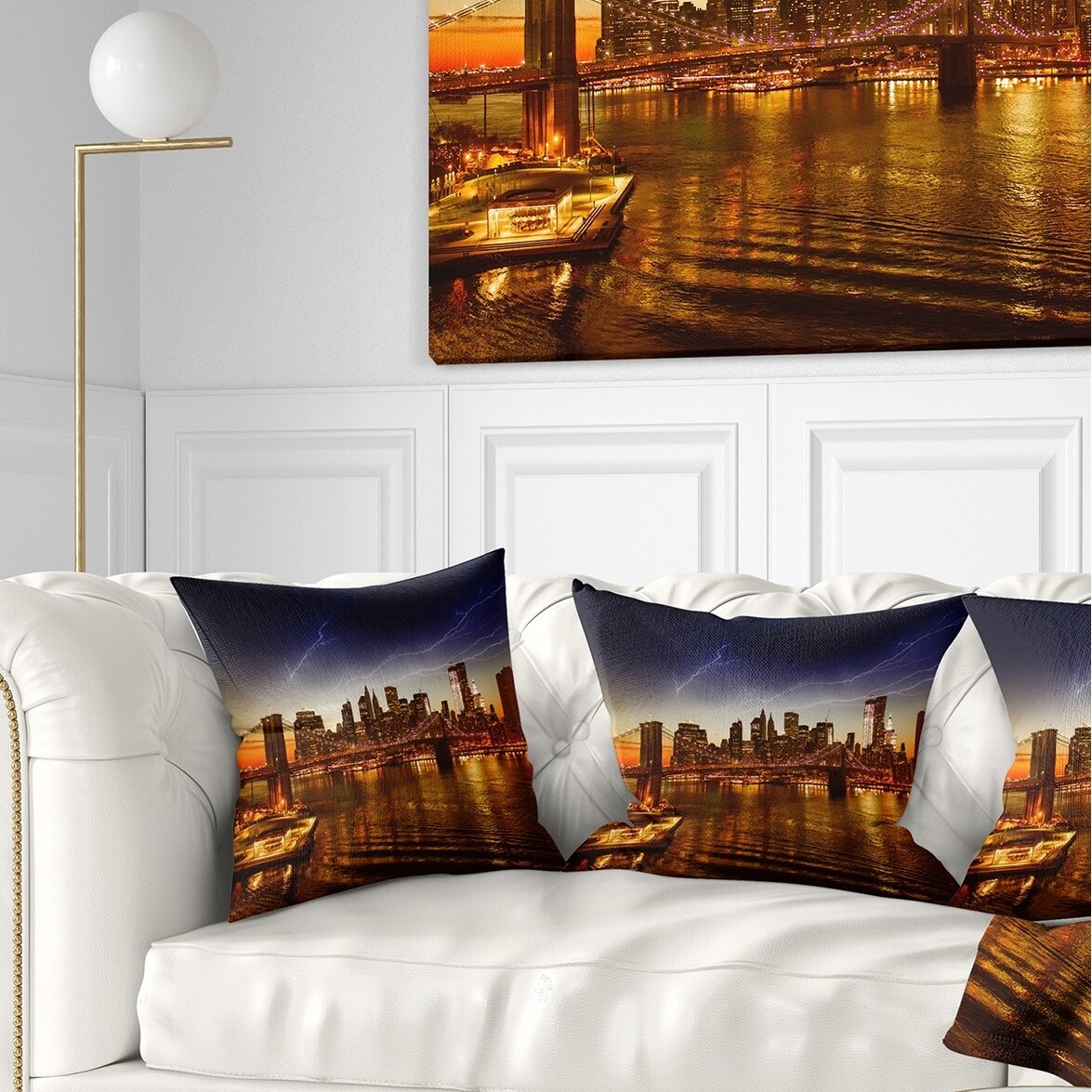 Designart 'Manhattan Sunset on East River' Cityscape Photo Throw Pillow