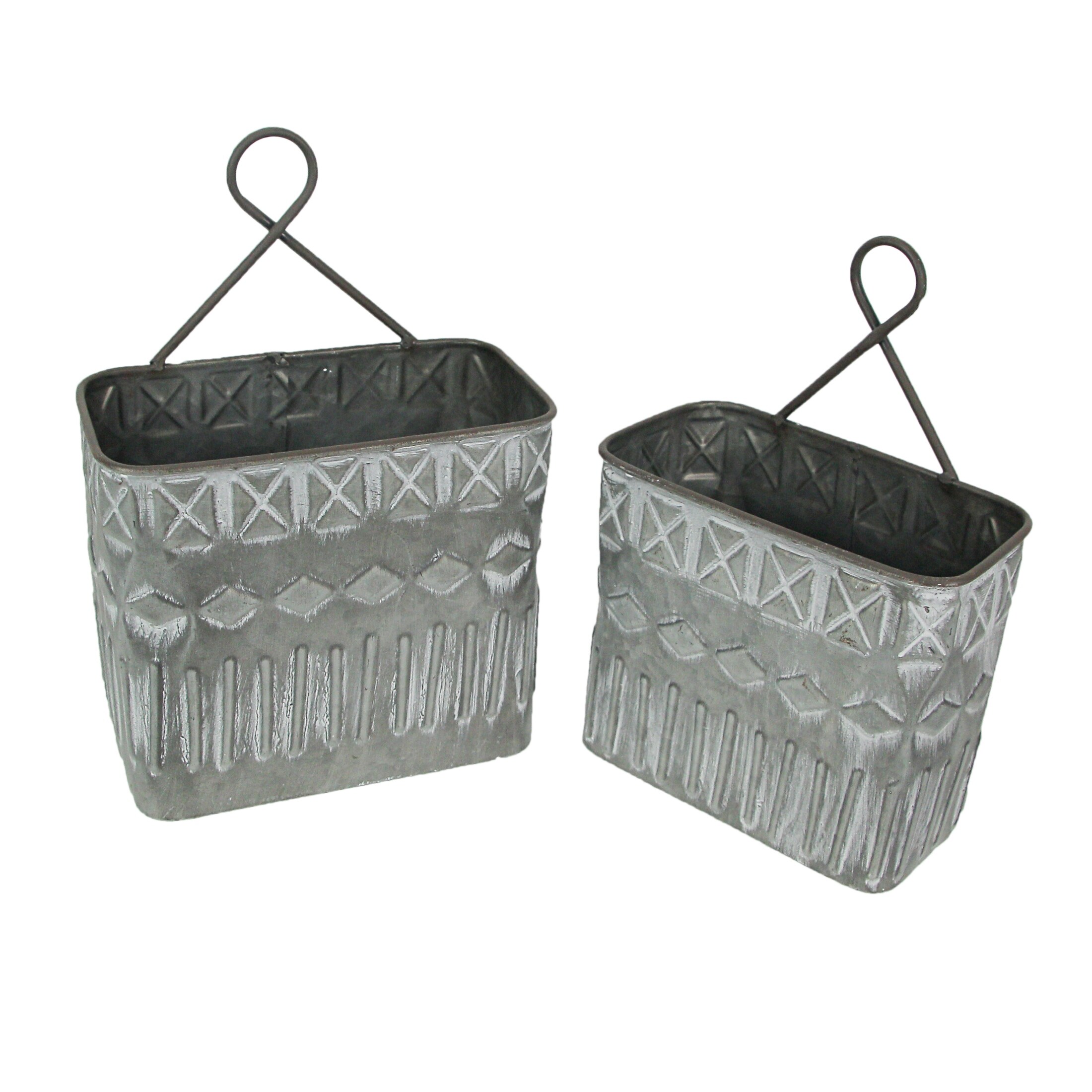Antiqued White Washed Southwestern Design Embossed Gray Metal Wall - 12.75 X 9.25 X 5.25 inches