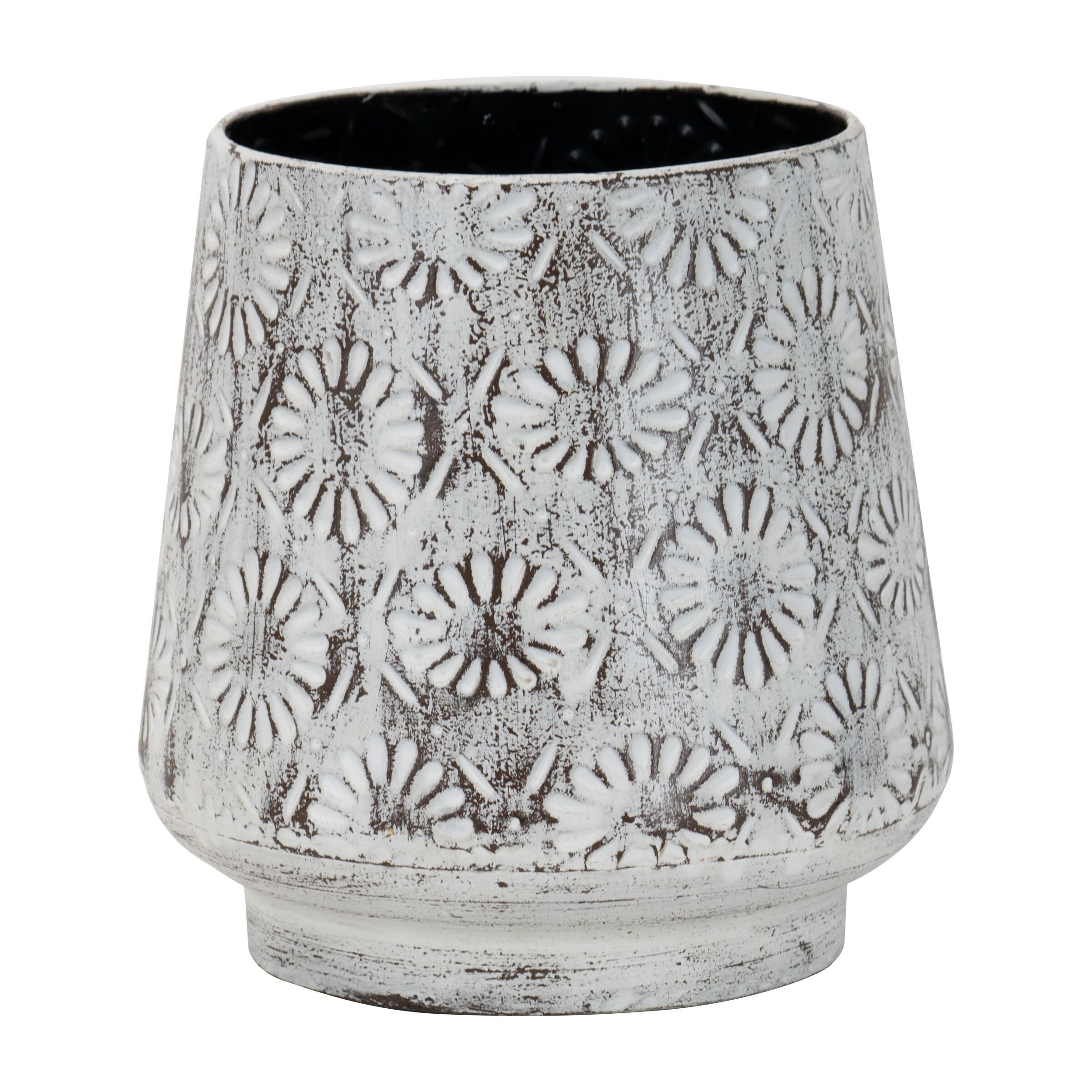 Foreside Home & Garden Antique White Embossed Floral Pattern Metal Planter - 7.5 x 7.5 x 8