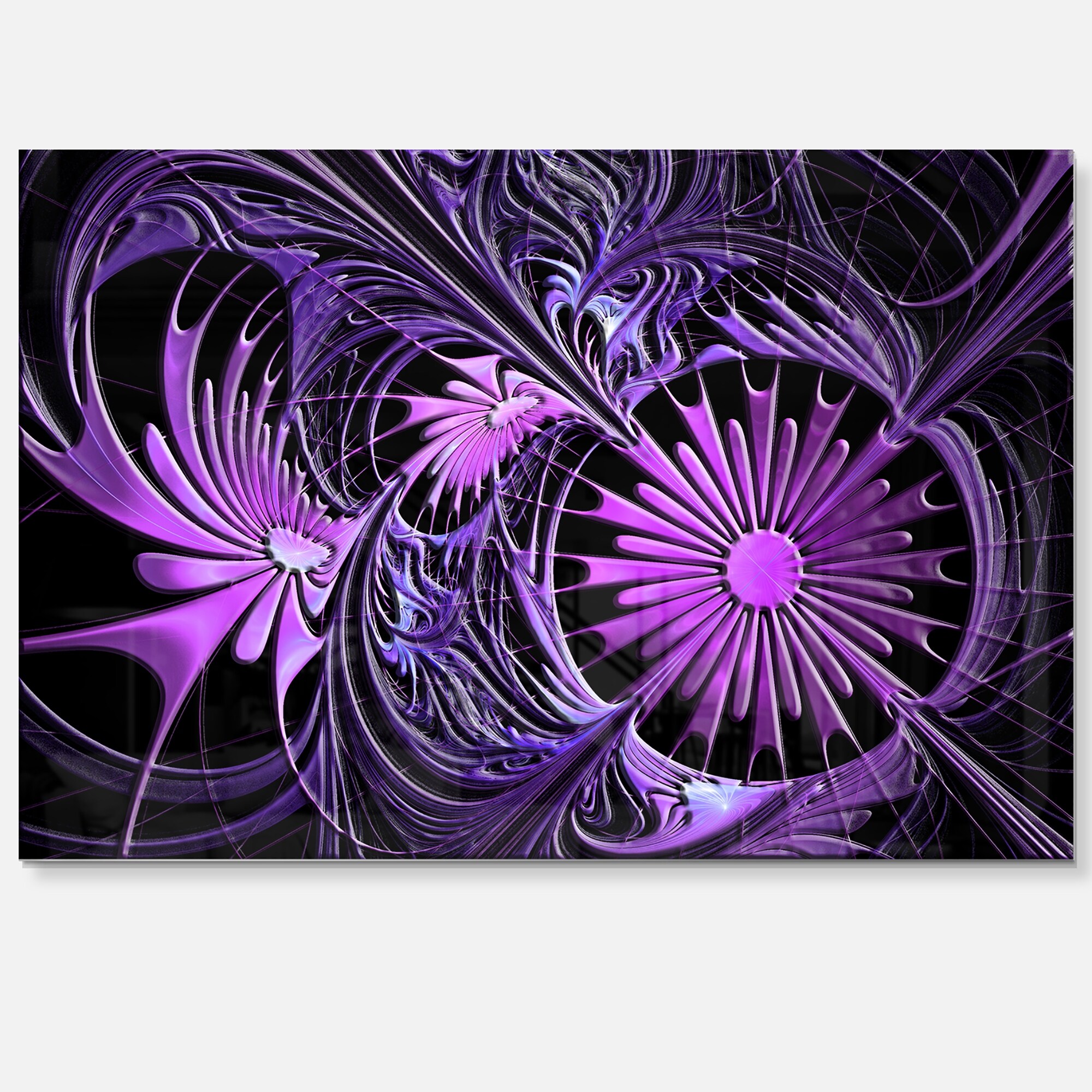 Embossed Purple Floral Shapes - Large Floral Glossy Metal Wall Art