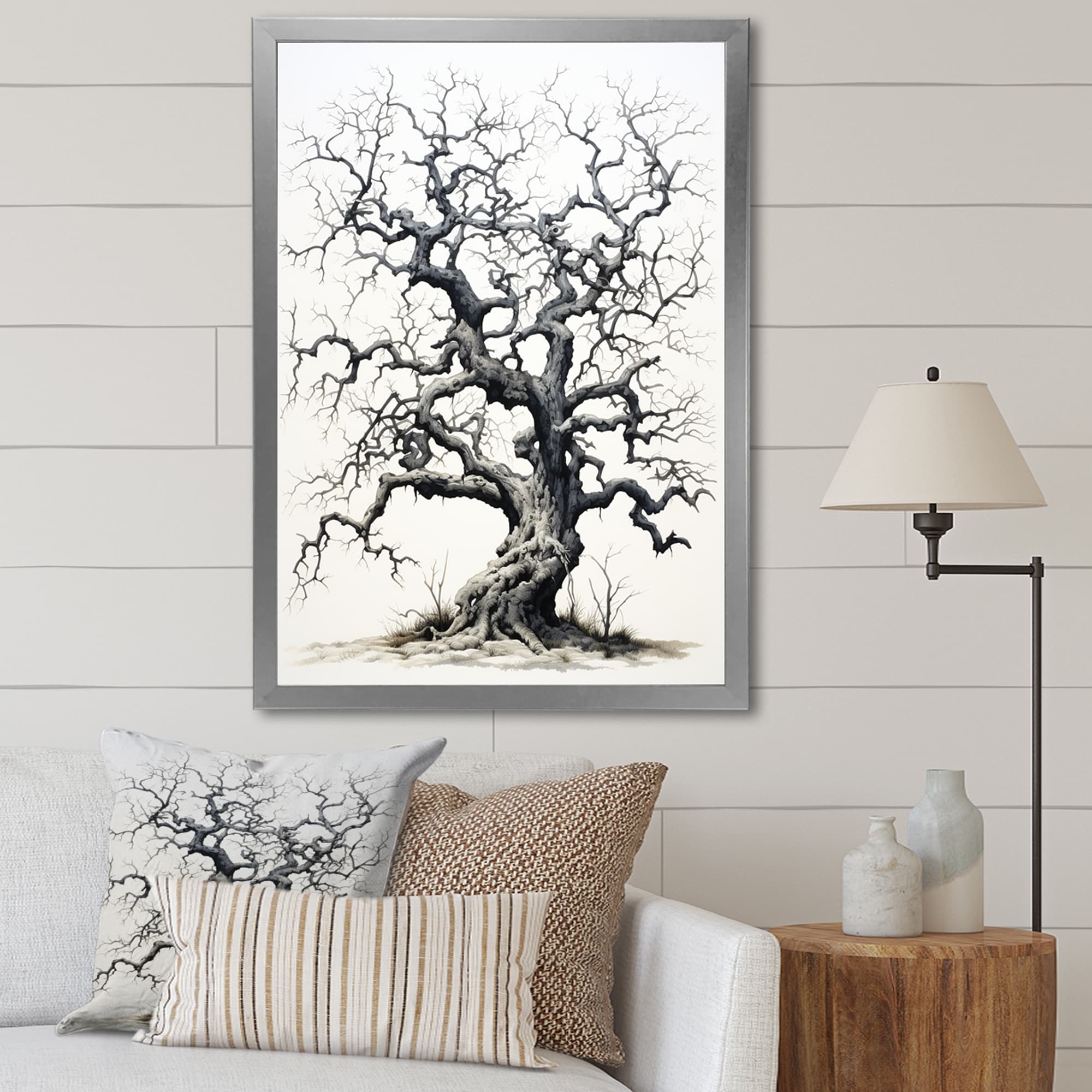 Designart "Tree Monochrome Eternal Shadows" Tree Monochrome Framed Canvas Print