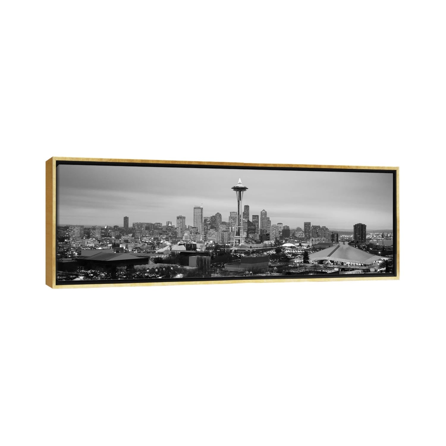 iCanvas "Seattle Panoramic Skyline Cityscape (Black & White - Evening)" by Unknown Artist Framed