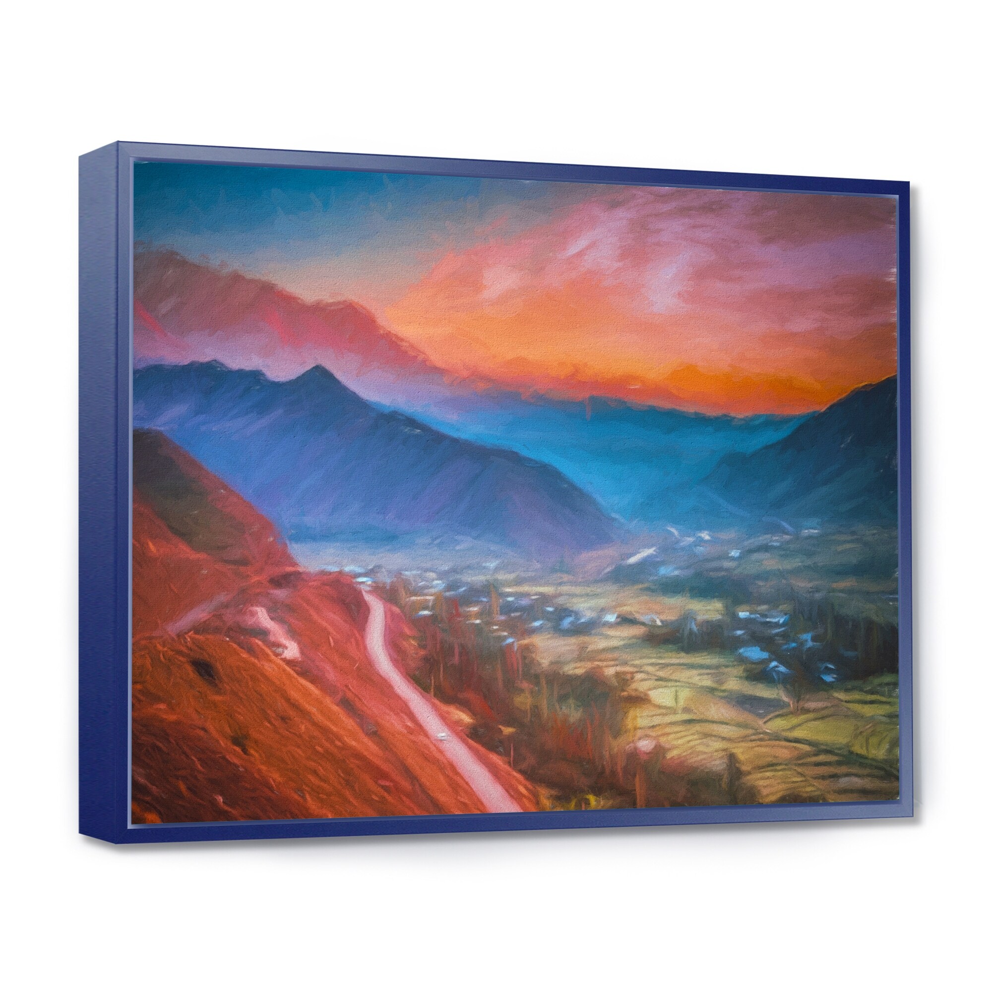 Designart "Road Through the ALamut Mountains During Evening Glow" Farmhouse Framed Canvas Wall Art Print