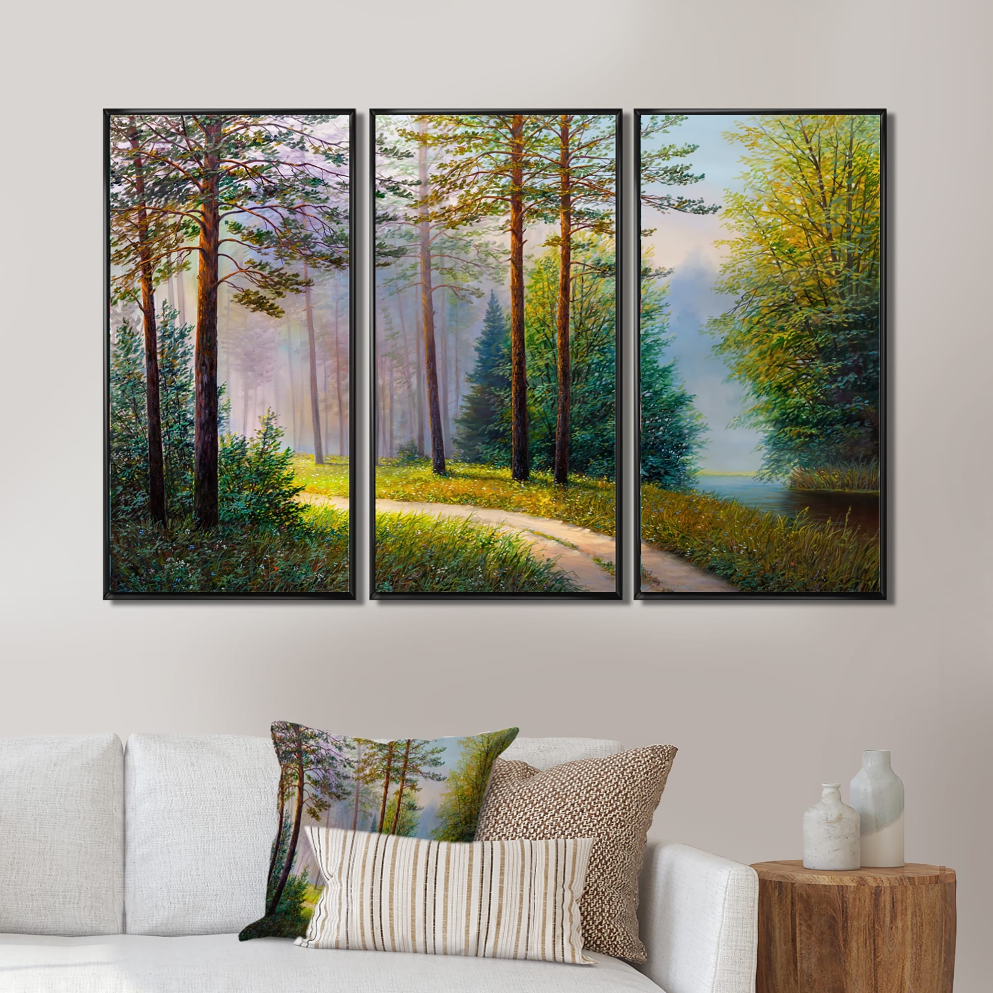 Designart "Subtle Evening Light Through the Trees I" Traditional Framed Canvas Wall Art Set of 3 - 4 Colors of Frames