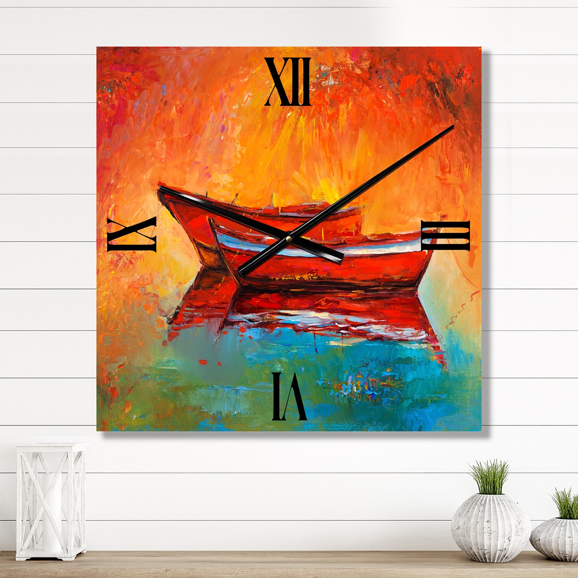 Designart 'Two Red Boats During Evening Glow' Nautical & Coastal Metal Wall Clock