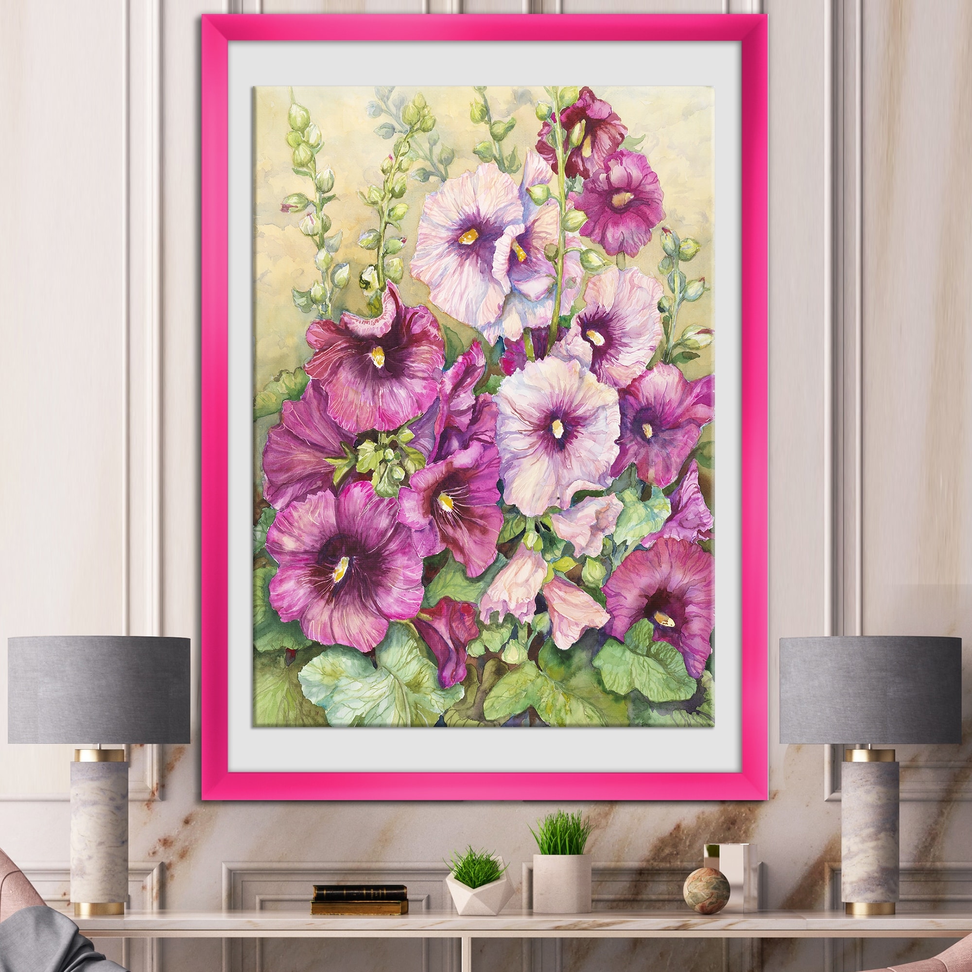 Designart "Hollyhocks In Evening Glow" Traditional Premium Framed Art Print