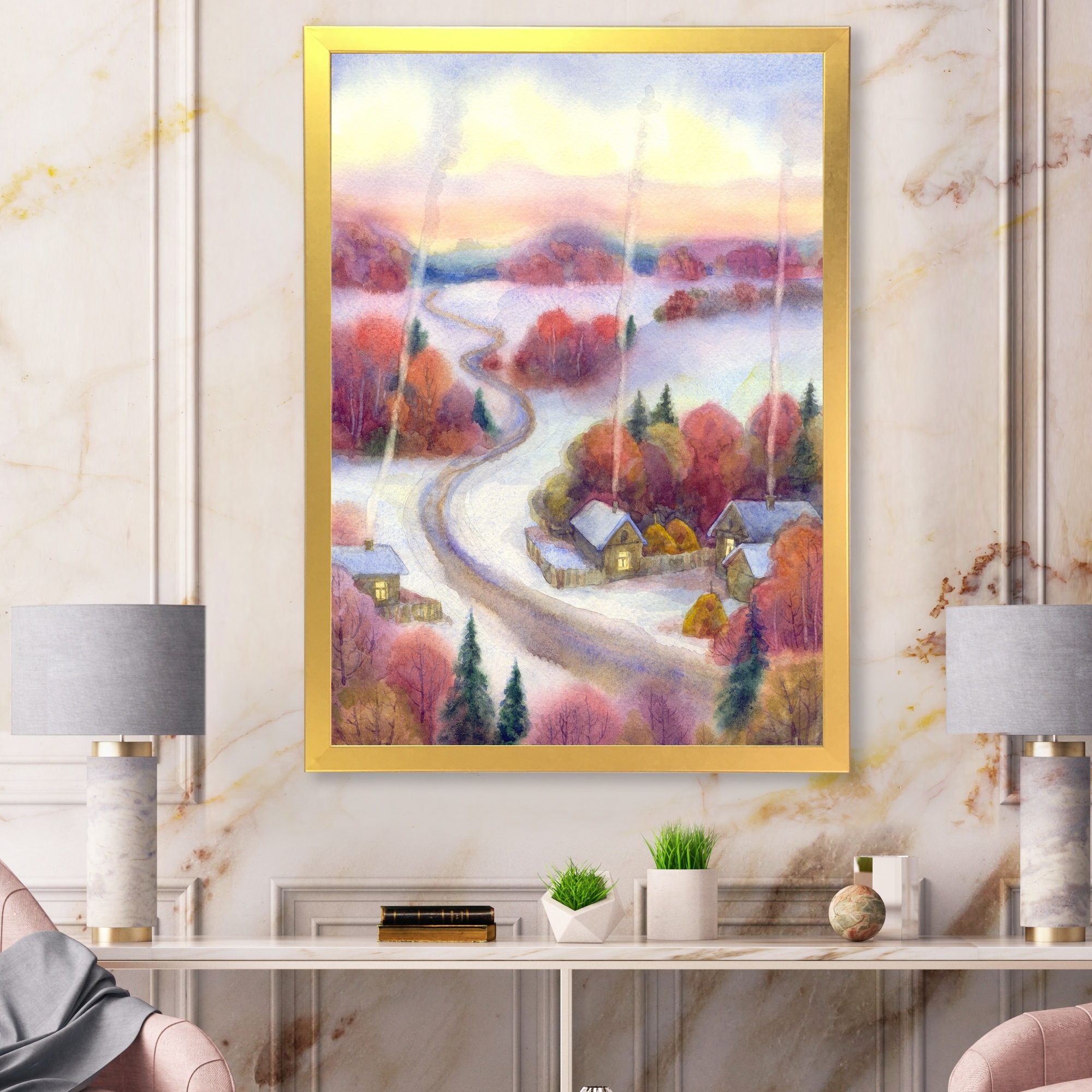 Designart "Winter Evening in the Village" Country Framed Art Print
