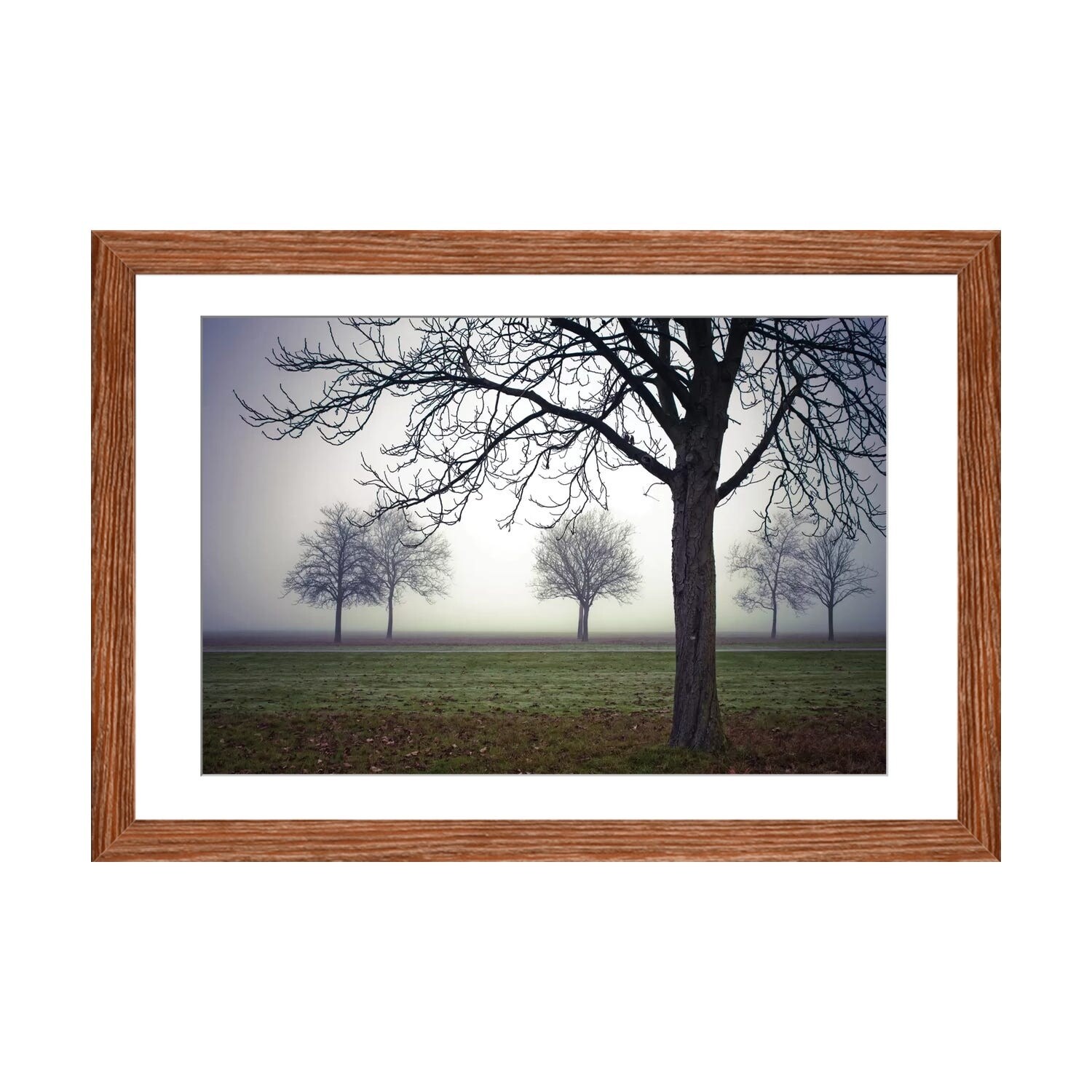 "Birch trees in evening fog" Black Float Frame Canvas Art