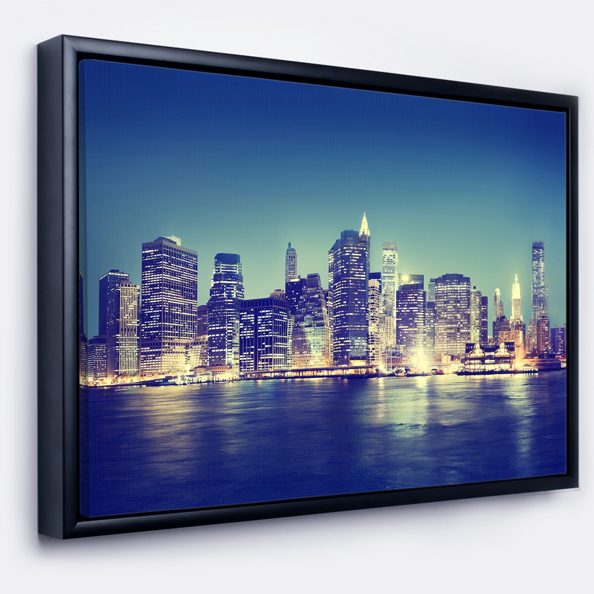 Designart "New York City Evening Panorama" Extra Large Framed Canvas Art Print