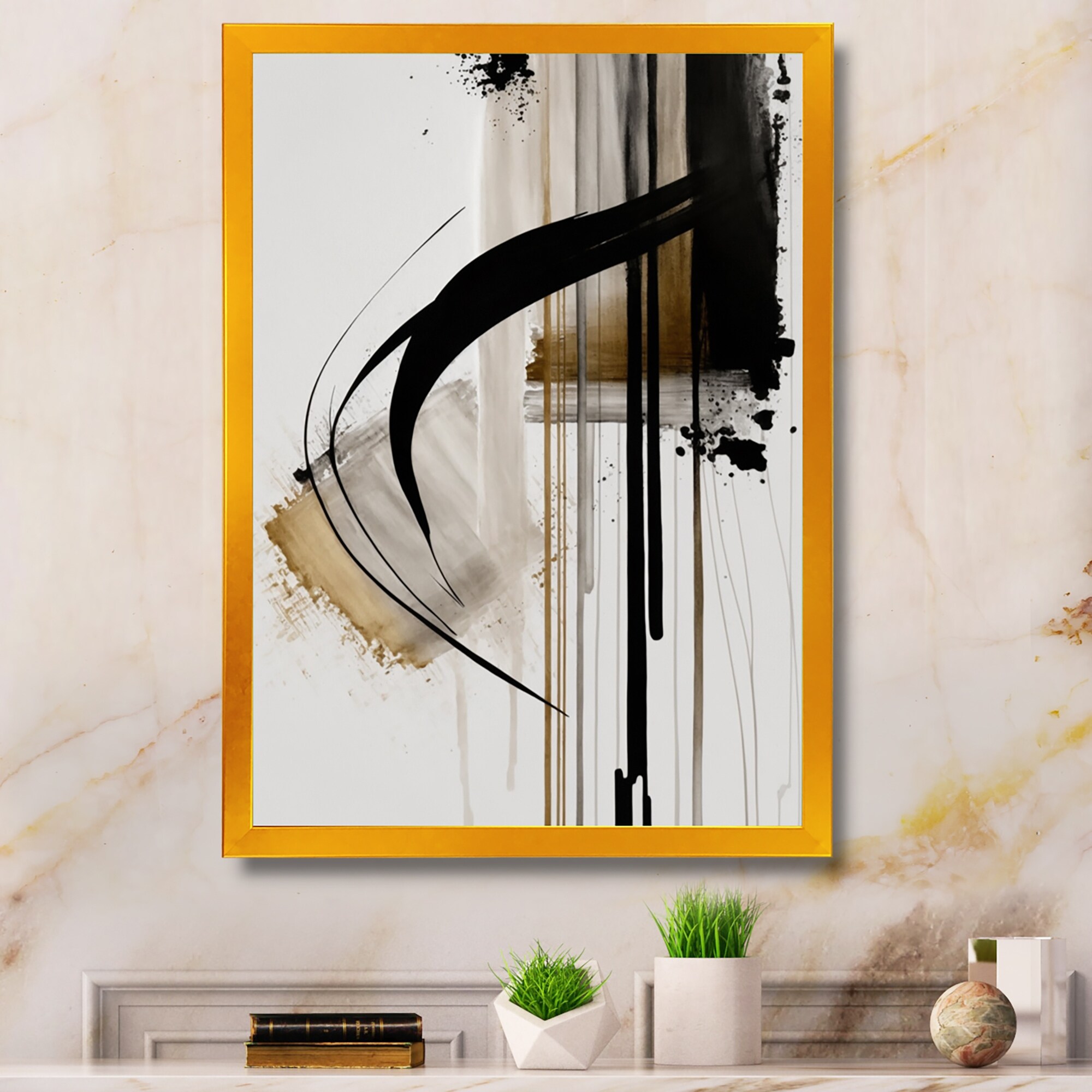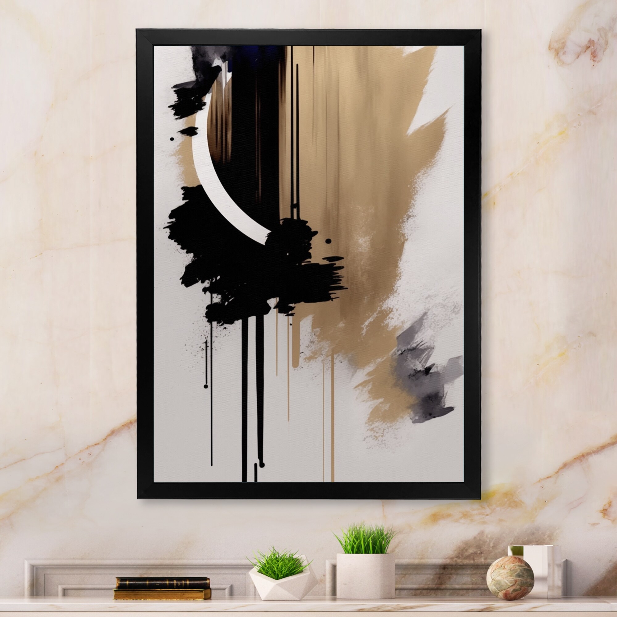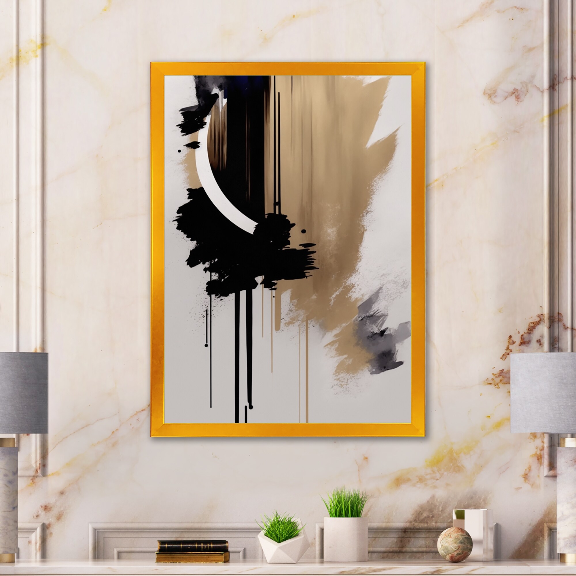 Designart "Black, White And Gold Expression I" Modern Framed Art Print