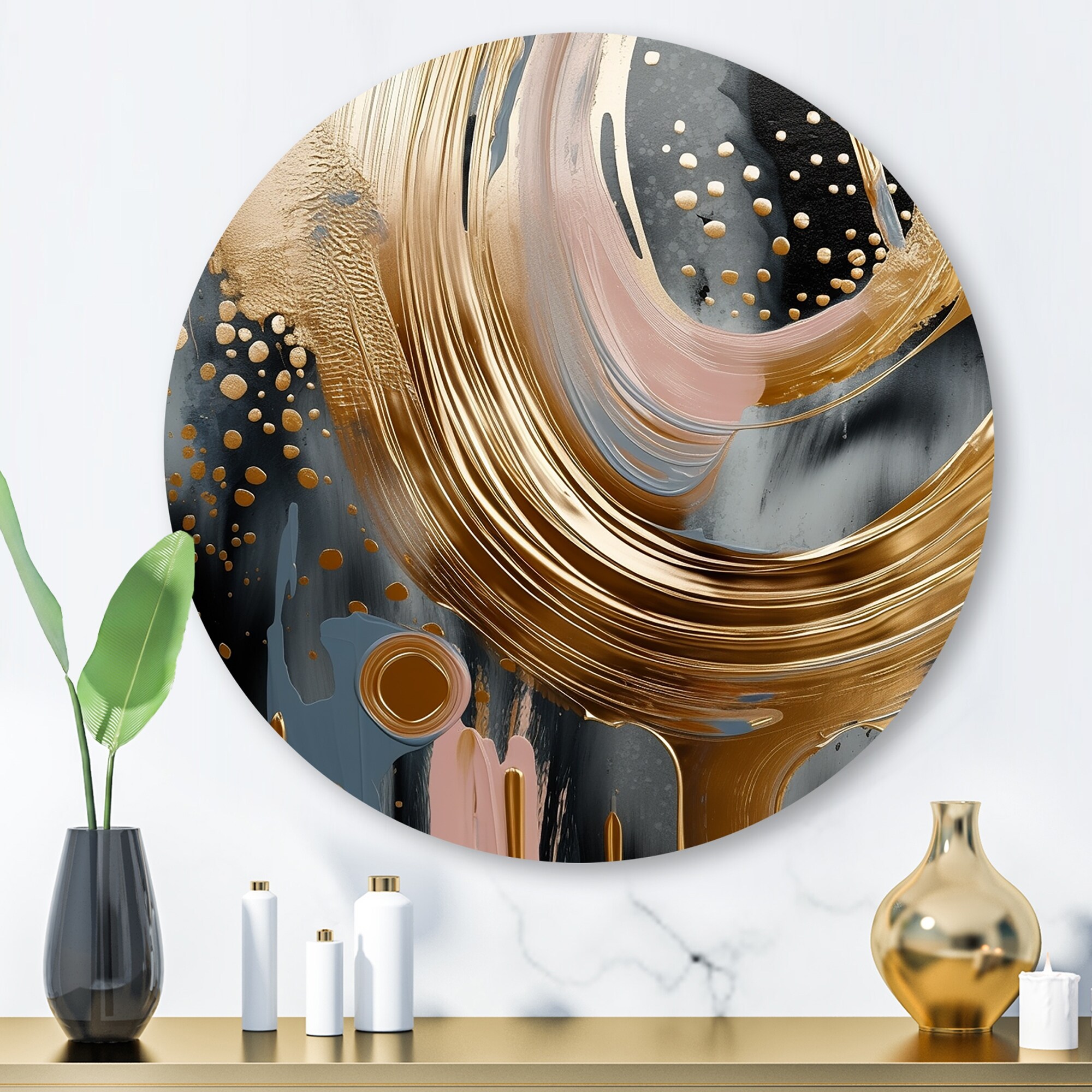 Designart "Gold And Black Marble Expression VI" Abstract Marble Metal Round Wall Art