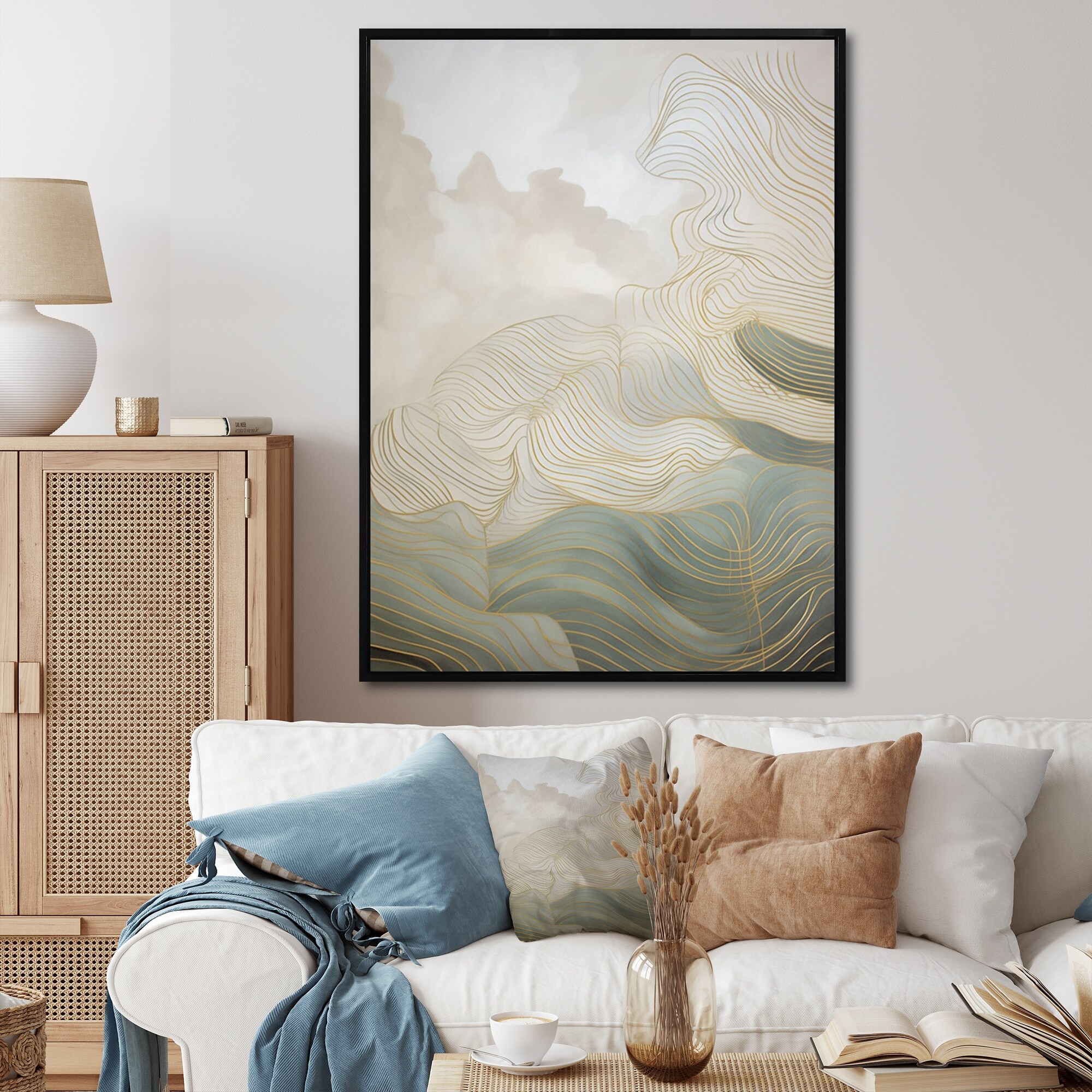 Designart "Gold And Grey Linear Expressions Iv" Minimalism Line Art Framed Canvas Wall Art