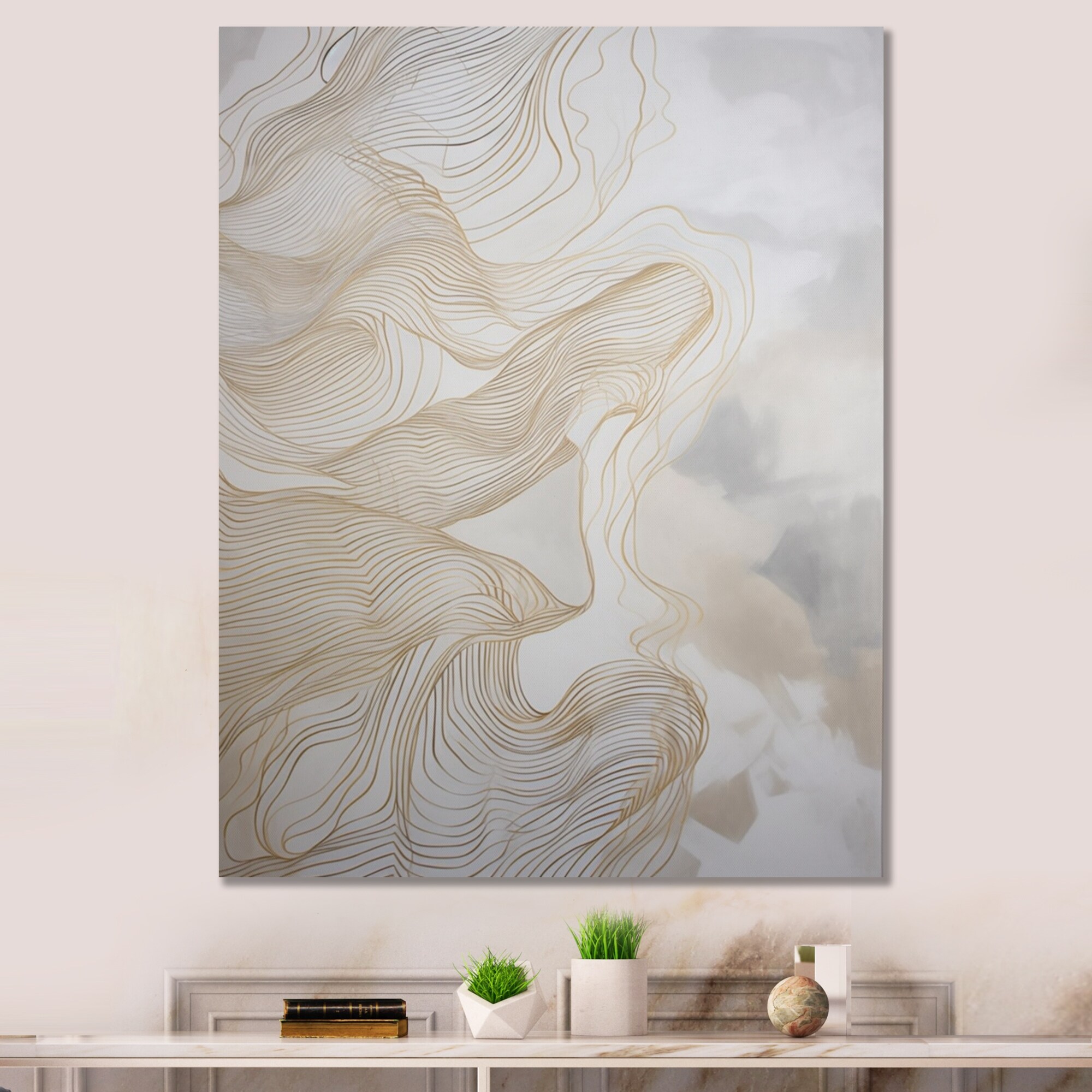 Designart "Gold And Grey Linear Expressions Ii" Minimalism Line Art Canvas Wall Art