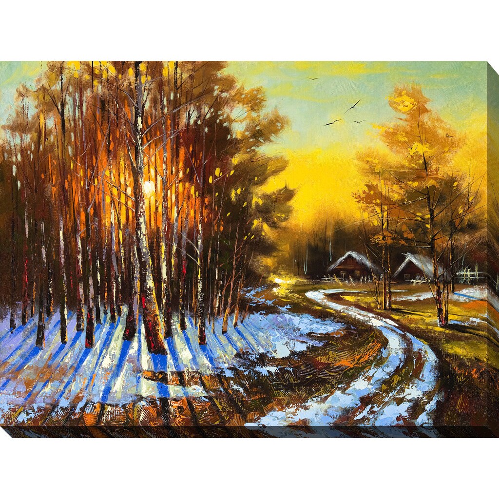 Designart "Winter Mountain Landscape And Farm With Snow" Country Framed Canvas Wall Art Print