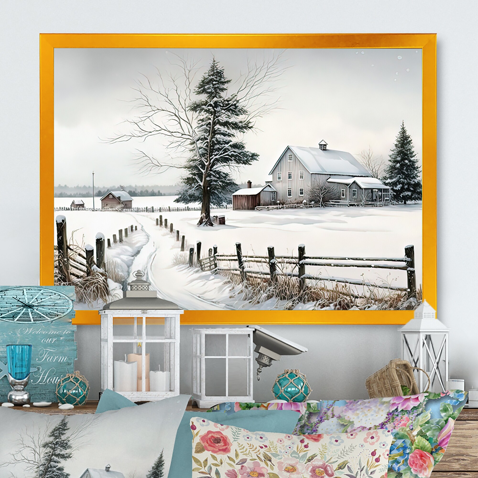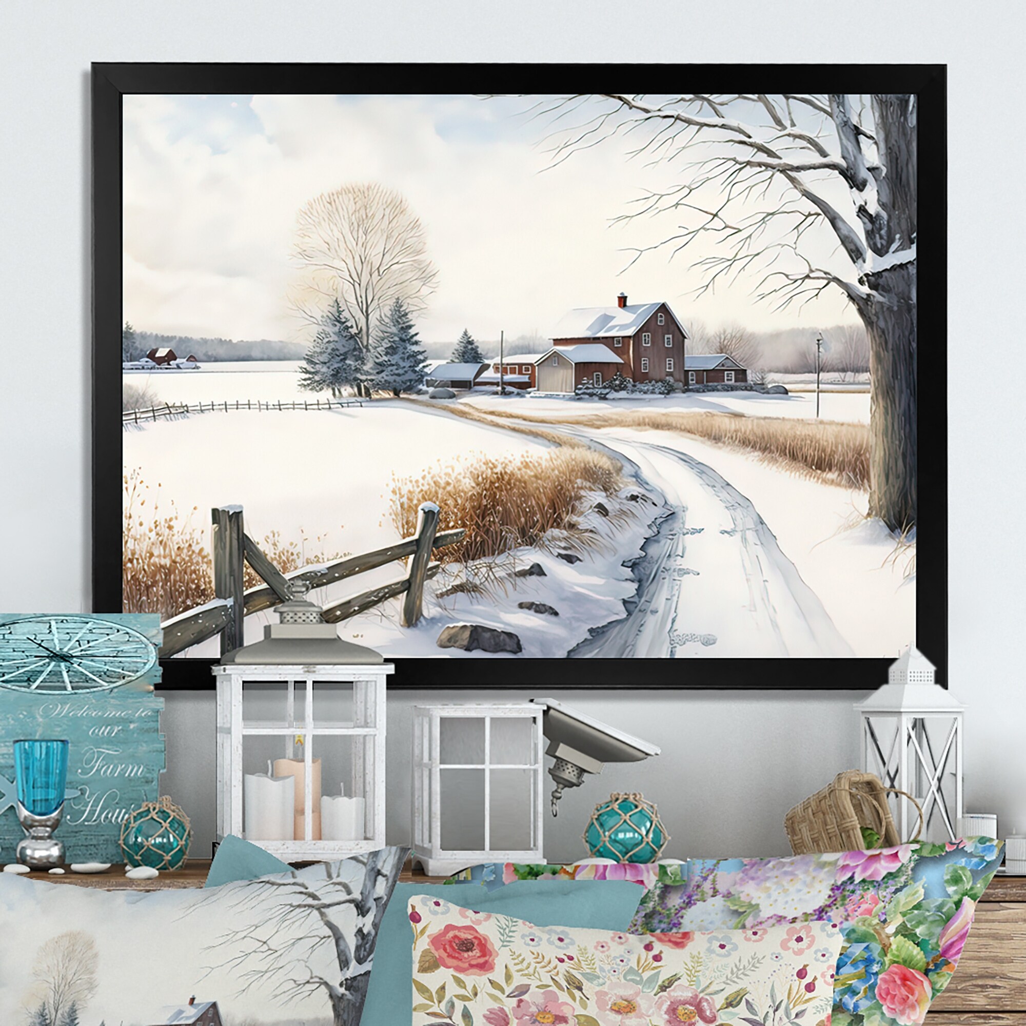 Designart "Nebraska Farm in Winter" Farmhouse / Country Framed Art Print