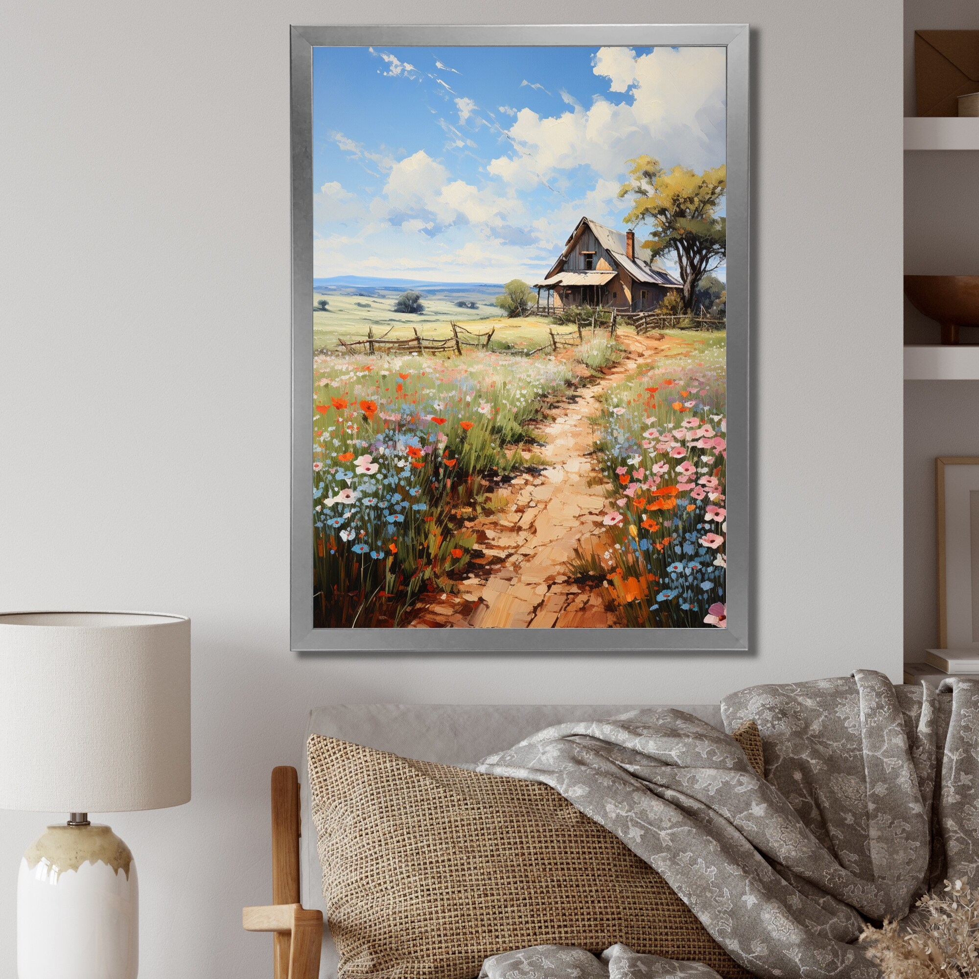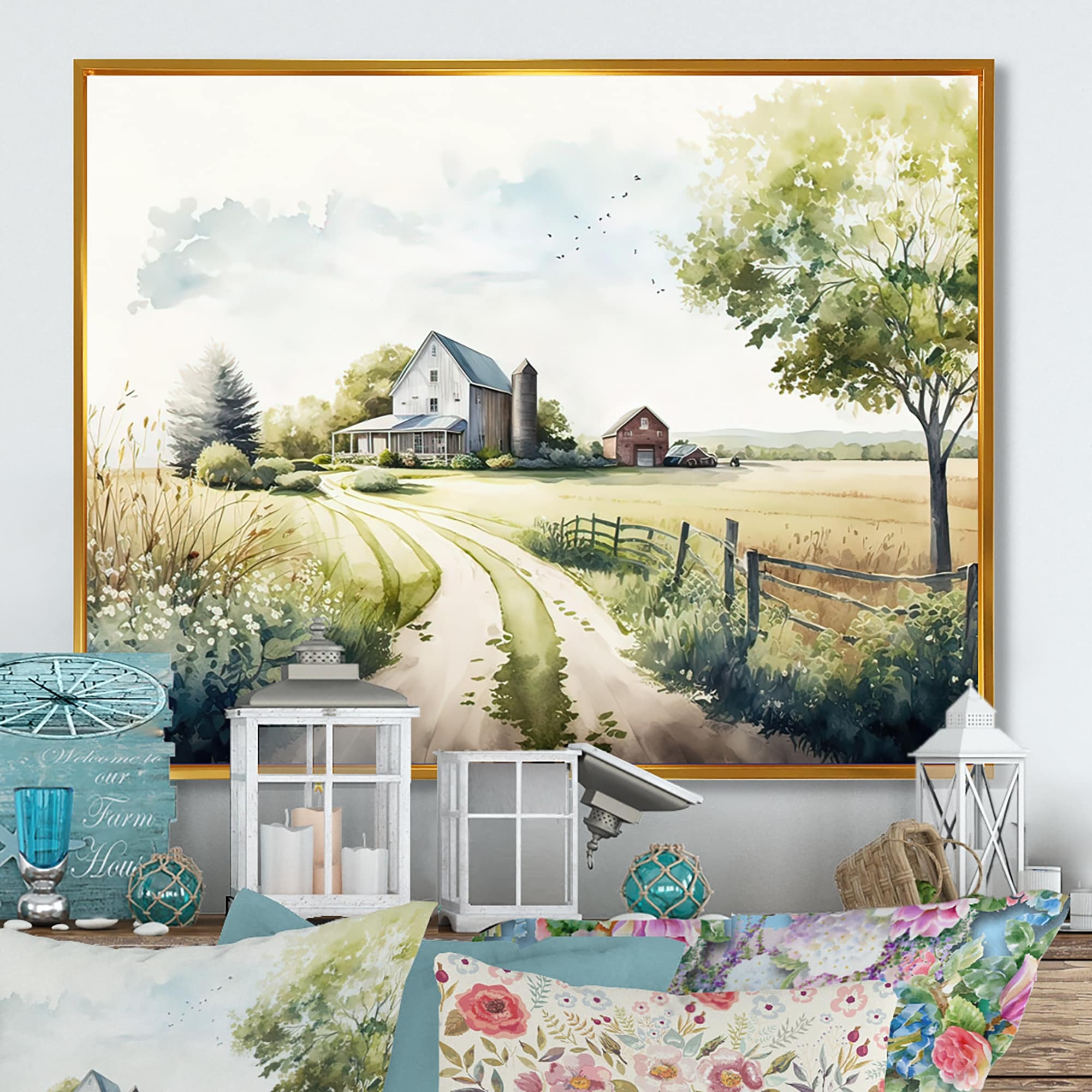 Designart "Farmhouse Impressionist Fields I" Farm Framed Canvas Prints