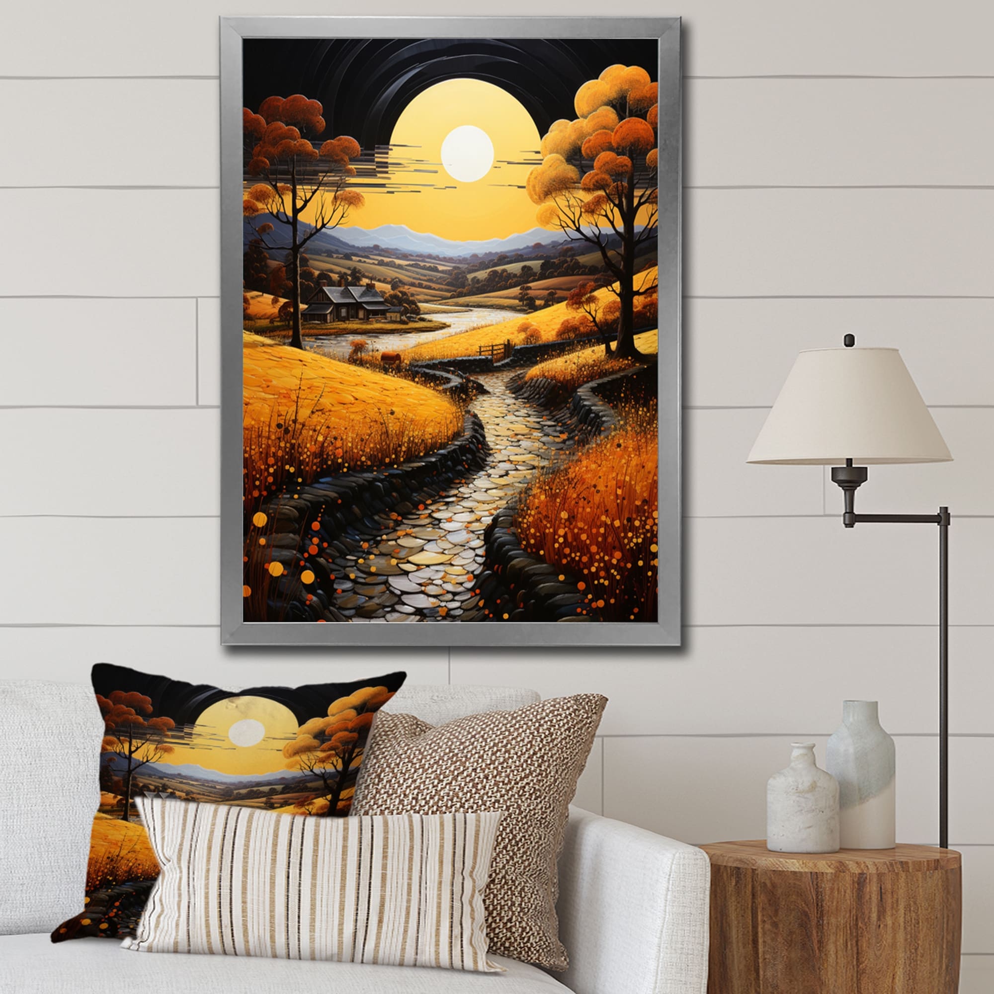 Designart "Farm Golden Harvest Pointillism I" Farm Framed Wall Decor